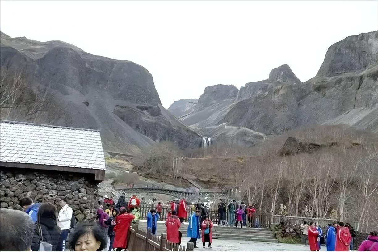 从老岭一路下行,直至长白山所在地——二道白河,在火车站附近看到了久闻大名的美人松。再继续前行约20公里,方到达进山的入口。 进入景区大门,广场上等待进山的游客很多,大部分都穿上了租借的棉大衣。站在人流中驻足前望,一条瀑布从峡谷断崖处飞流直下,瀑布边上有一上山的台阶小路直达山顶。真想徒步上山,但一路牌挡住了去路,“因线路危险,禁止徒步上山”。自驾车上山也不行,因火山形成的山势太陡峭。这样,除了门票外,还分别买了85、80元的景区内交通车票。