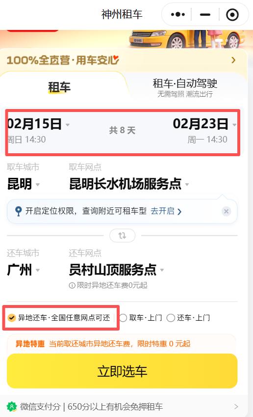 神州租车还有一个优点,就是车子干净。 对于我这个轻微洁癖人士太友好了。 “脏必赔”服务,会在取车时告知,流程很简单,10分钟内反馈清洁问题可获赔付。 关于费用,APP会清晰显示所有费用,结算明细实时可查,租得明明白白。 马上就是春节,很多人会担心春节期间租车难。 为了保障春节用车,神州租车准备了10万辆新车,来确保旅途中的顺畅和舒适。 神州租车,,, 10万辆新车上线!租好车过春节,超多好礼等你来拿 小程序 一段旅行最有意思的,始终是在路上。 比起抵达灵山,前往灵山的路,更能刷出惊喜的副本。 所以长假旅行,我们几乎每一次都不假思索地选择自驾。 自驾的好处很多,除了自由。 更妙的在于,它像极了人生的状态。 是一种松弛有度的生存智慧。