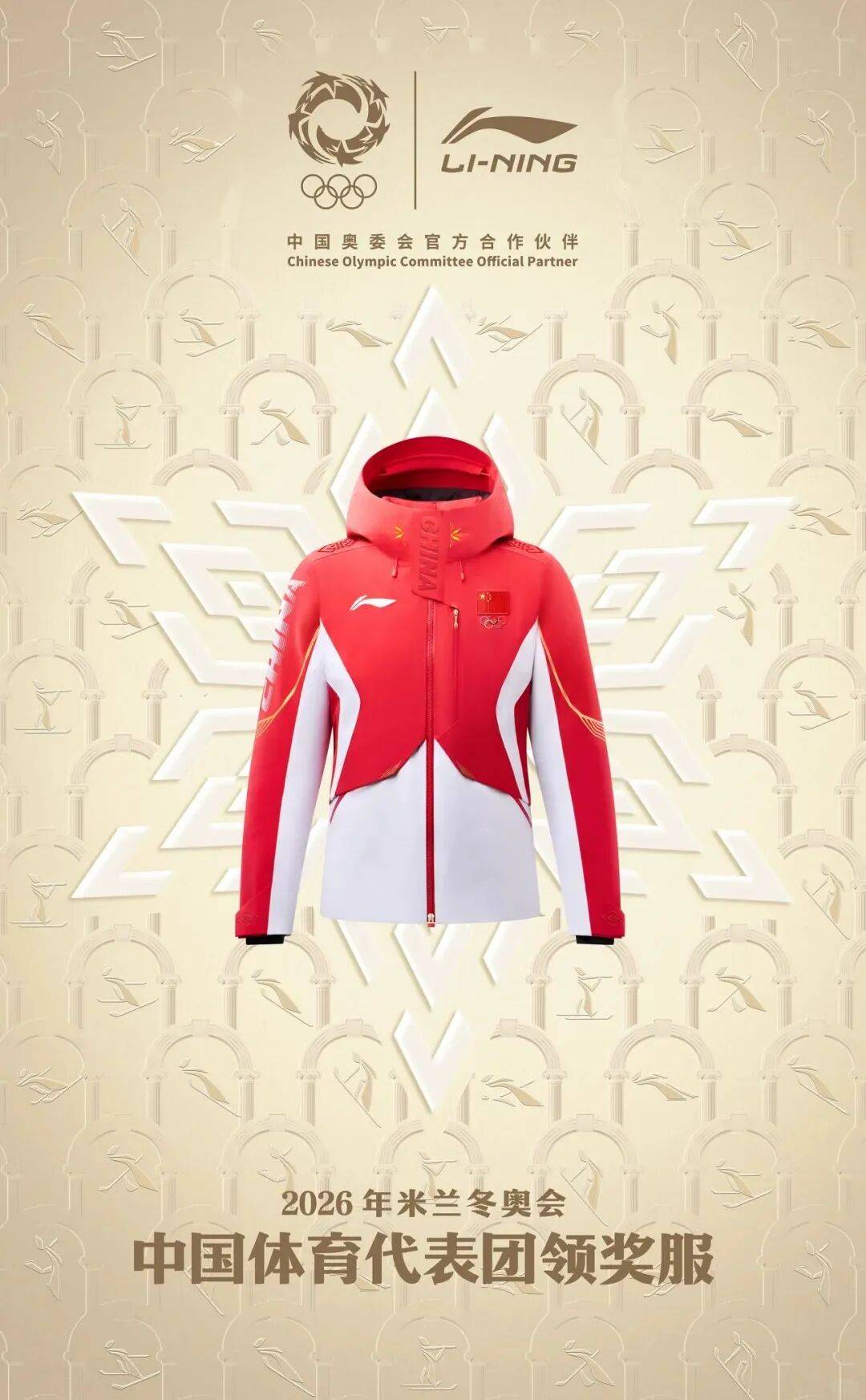 领奖服:红白配色延续"冠军龙服"基因,融入"双胜纹"吉祥符号与航天锁温棉科技,防风防雨性能突出。