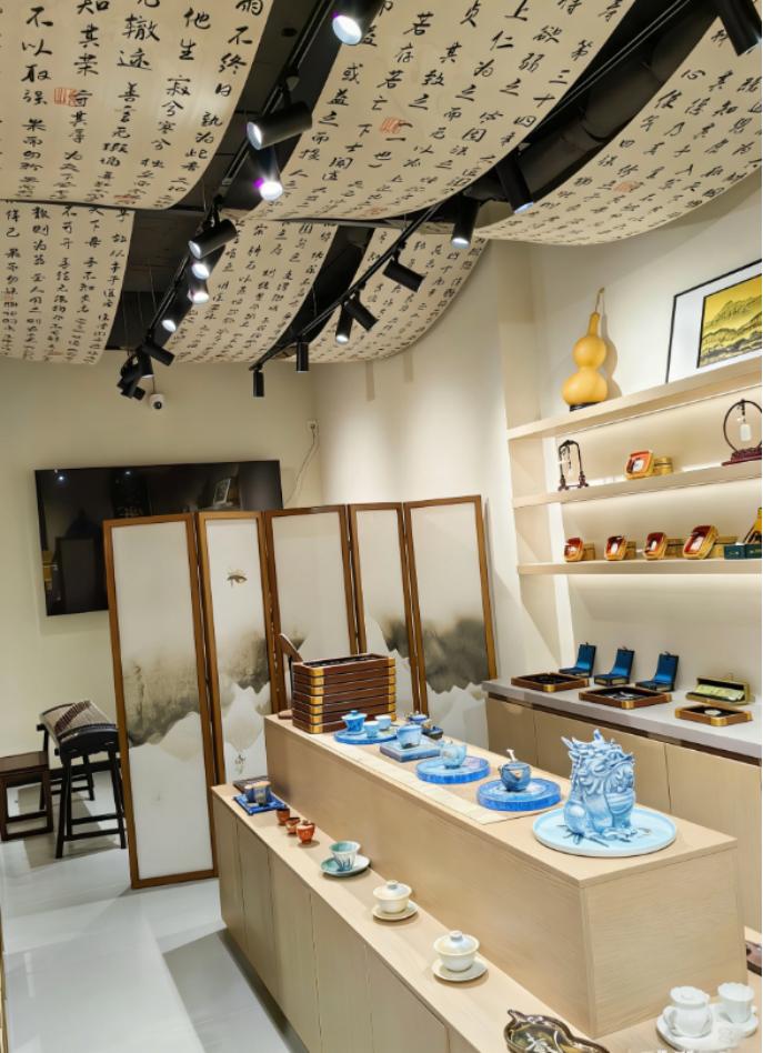 走进文创店龙虎寻隐阁 以龙虎山山水、道文化 非遗元素为灵感的文创产品琳琅满目