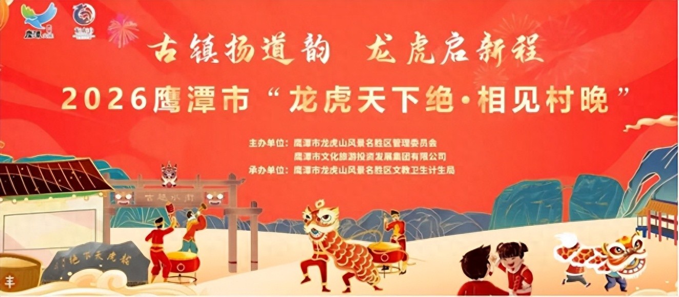 古镇扬道韵,龙虎启新程! 就在明天 备受瞩目的 2026“龙虎天下绝·相见村晚” 春节大联欢暨启动仪式 即将登录 龙虎山景区上清镇古戏台 1月29日18:30—20:00 1个半小时 用最地道的本土风情、最鲜活的群众演绎 点亮鹰潭新春之夜