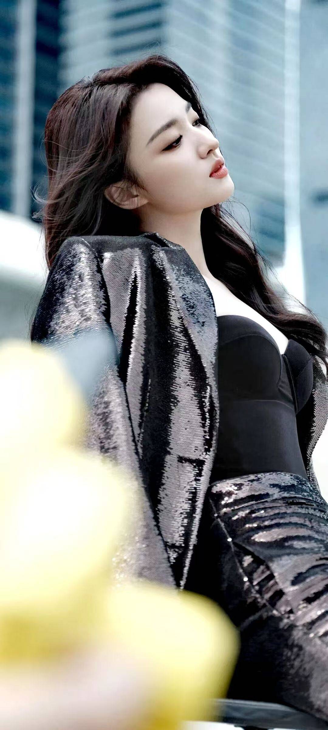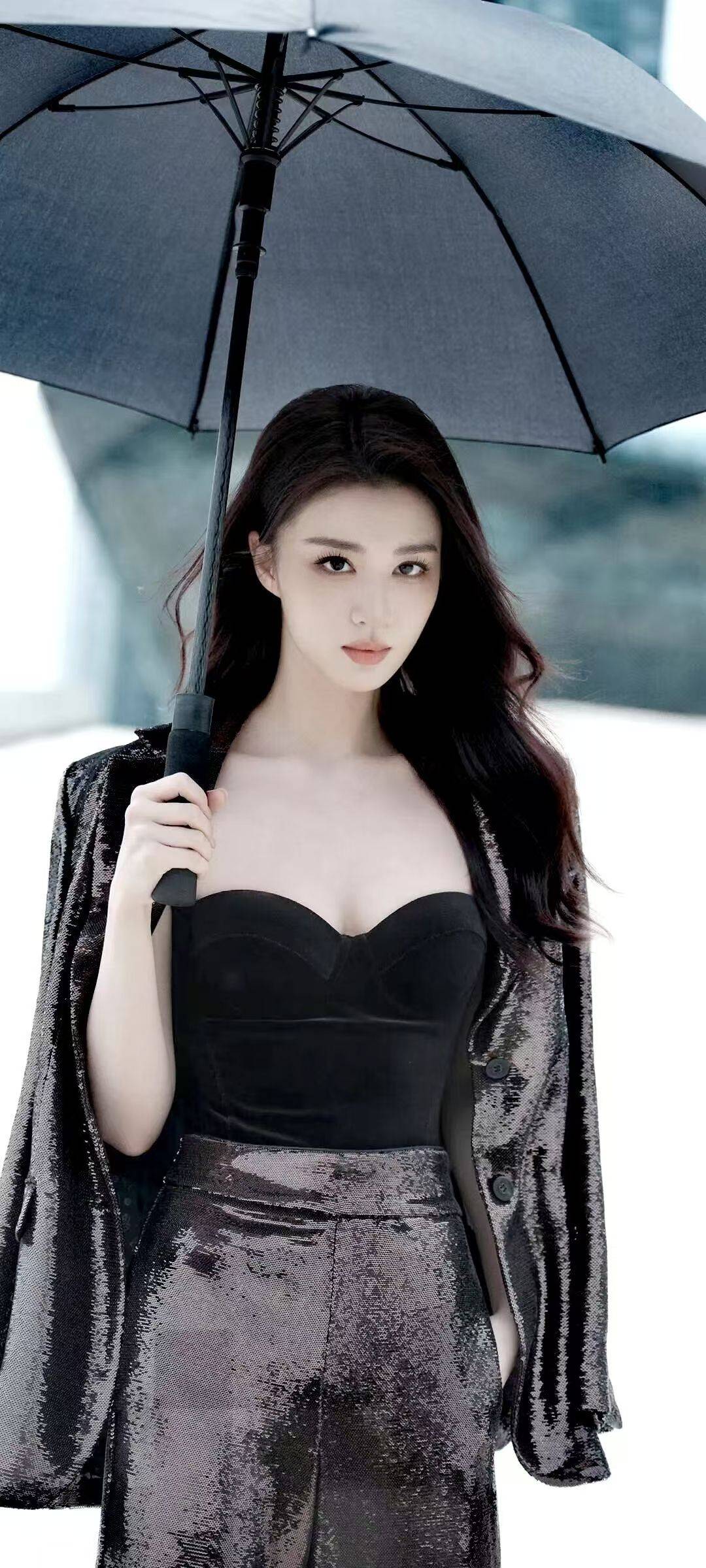 家人们快看王楚然这组都市大片!撑着黑伞站在街头的样子也太绝了吧!又酷又撩的御姐范儿直接戳中我心巴,这姐的颜值身材真的没话说啊!先看她撑伞那张,黑色抹胸配银色亮片西装裤,外面披着同系列亮片西装,整个人在阳光下闪得像行走的碎钻。