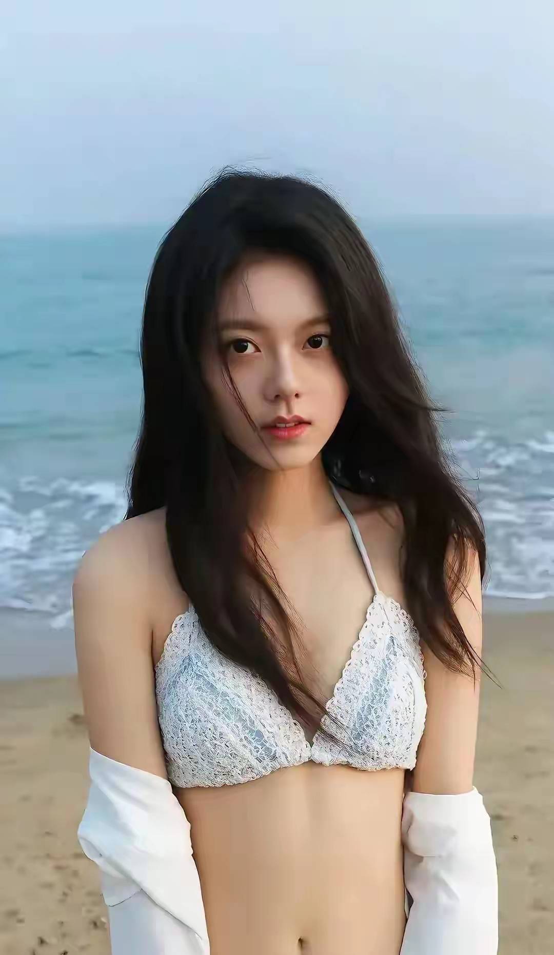 但你多看几秒,就能品出点门道。 那吊带的V领设计,恰好露出清晰的锁骨和脖颈线条,贴合却不紧绷,把少女那种还没完全长开、带着点青涩和纤薄的轮廓,勾勒得明明白白。 没有汹涌的曲线,但那种流畅的、盈盈一握的线条感,反而特别抓人。