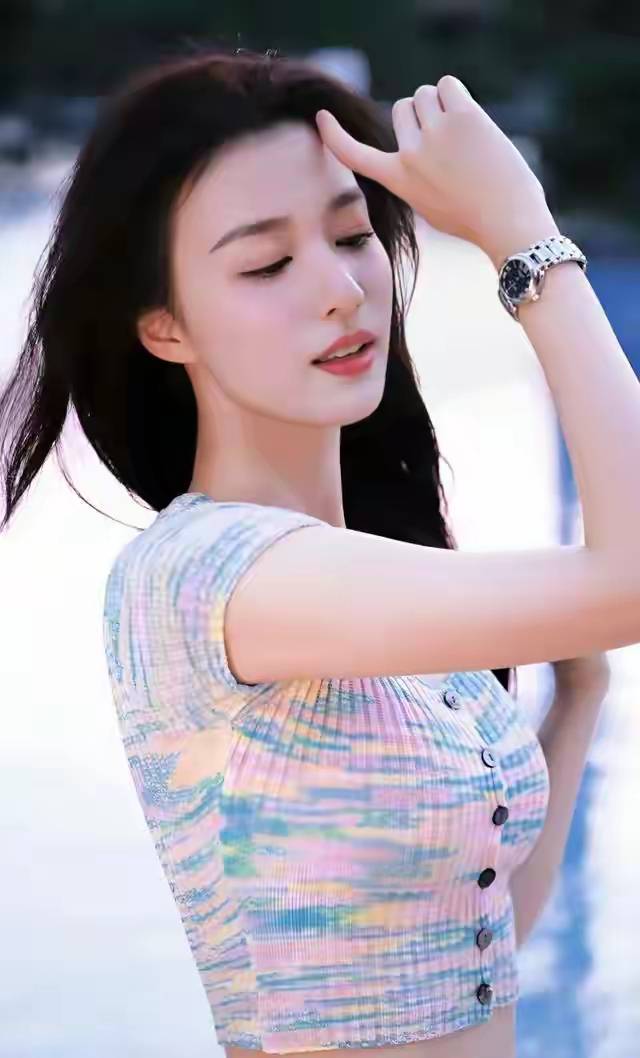 她的颜值核心在于无可挑剔的骨相基底,三庭五眼比例均衡,颌面线条流畅自然,颧骨与下颌折角形成0.75的黄金比例,既保证了中面部的立体支撑,又不失柔和质感。标志性的杏眼眼尾微扬,兼具仕女的古典韵味与现代女孩的灵动狡黠,搭配高挺适中的鼻梁与饱满鼻基底,素颜怼脸也能靠骨骼撑起精致感。冷白皮更是她的加分项,阳光下白到反光,连膝盖都光滑细腻,无需厚重妆容便自带发光滤镜,化妆师曾透露她只需薄扫腮红就能尽显气色。小圆脸与利落下巴的组合巧妙平衡了幼态感与贵气,笑时梨涡浅浅,静时清冷疏离,实现了甜与飒的无缝切换。