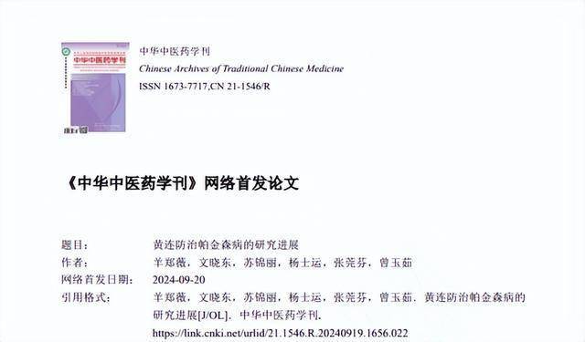 [1]羊郑薇,文晓东,苏锦丽,等.黄连防治帕金森病的研究进展[J/OL].中华中医药学刊,1-18[2024-10-03]
