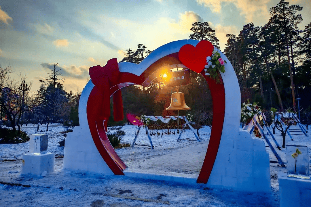 路过双鱼广场, 99颗爱心雪雕藏着“长长久久”的祝福。 与爱人并肩合影,冰雪都变得甜蜜。
