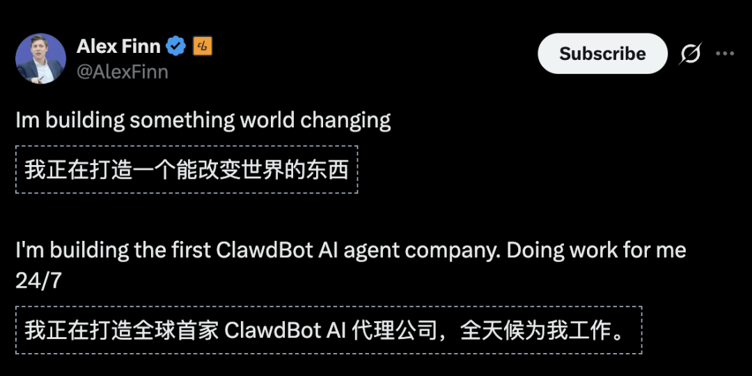 很多人说是炒作。Alex Finn不争辩,他直接建「改变世界的产物」。