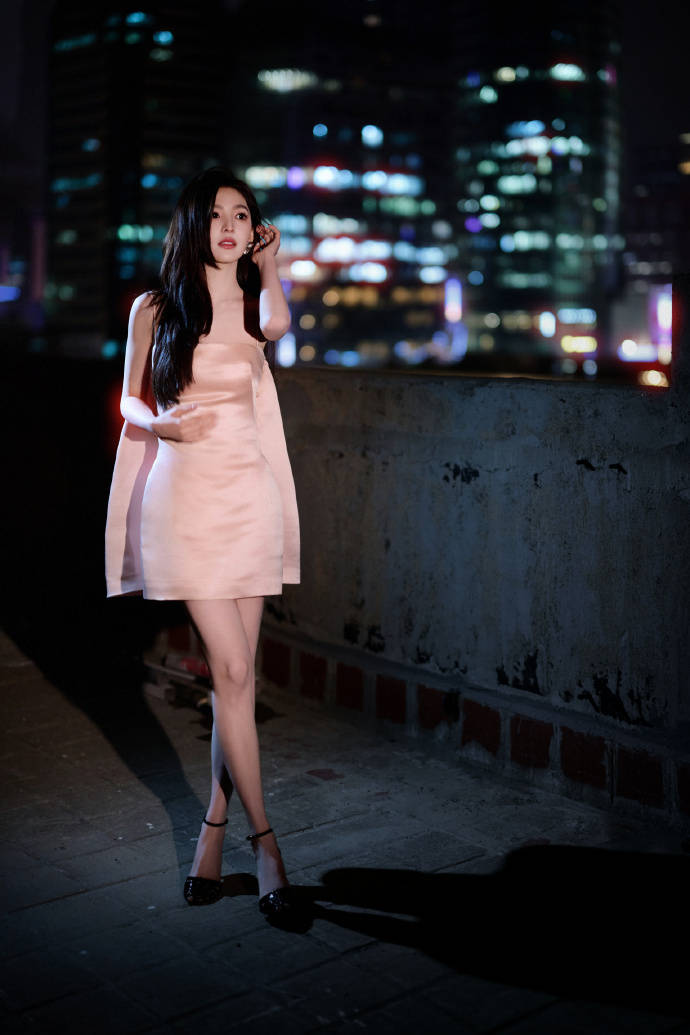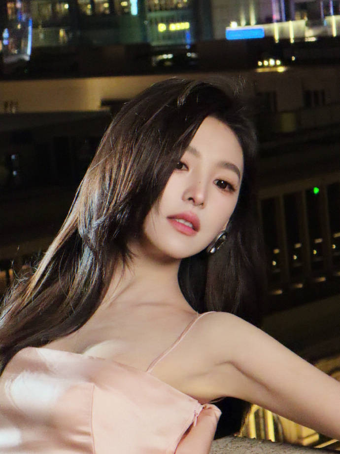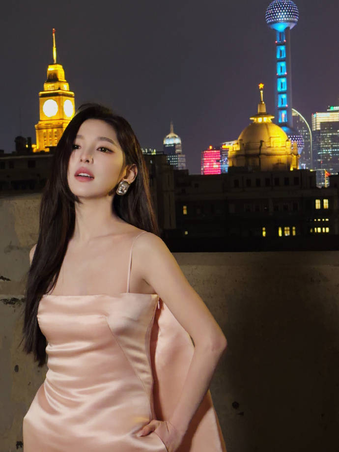 最绝的是她与夜景的化学反应。外滩的江风撩起长发,陆家嘴的霓虹在她耳畔炸成光斑,她却像自带结界。某组天台大片里,斑驳水泥墙和身后摩天楼形成荒诞对比,她单手插兜斜倚栏杆,粉裙在夜色里白得像月光。评论区炸锅:“这姐把贫民窟走成香榭丽舍了吧?” 连专业摄影师都服气:“她站在那儿,连东方明珠都自动降级成背景板。”
