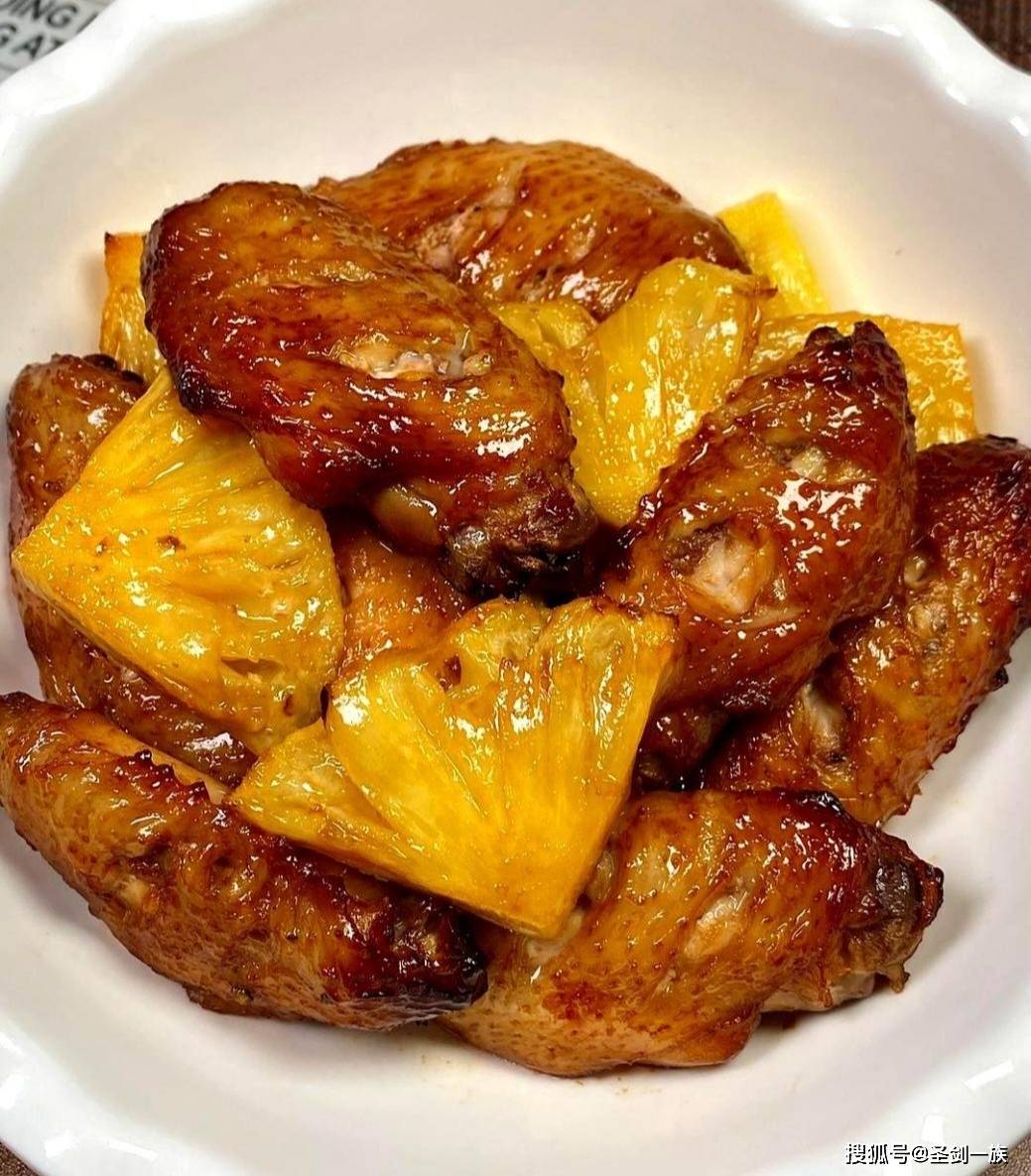 【食材】 鸡翅、菠萝、蒜瓣、生抽、老抽、蚝油、蜂蜜、奥尔良粉 【做法】 1. 鸡翅划刀,加入蒜瓣、1勺生抽、1勺老抽、1勺蚝油、1勺蜂蜜、2勺奥尔良粉。 2.将鸡翅与酱料混合均匀,接下来腌制,半个小时,以使其充分入味。 3.菠萝切片铺底,摆上鸡翅,刷一层食用油。 4.空气炸锅180度烤15分钟,翻面刷蜂蜜后再烤10分钟。 六、凉拌折耳根
