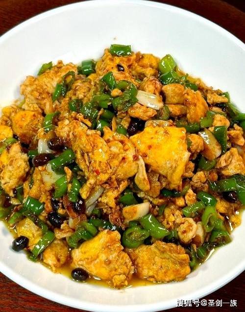 【食材】 青椒、鸡蛋、盐、鸡精、蚝油、生抽 【做法】 1.青椒切碎,与打散的鸡蛋混合, 2.加入盐、鸡精搅拌均匀, 3.热油倒入蛋液,先煎定型再炒散, 4.加入蚝油、生抽调味, 5.翻炒均匀即可出锅。 四、双椒炒鸡腿肉