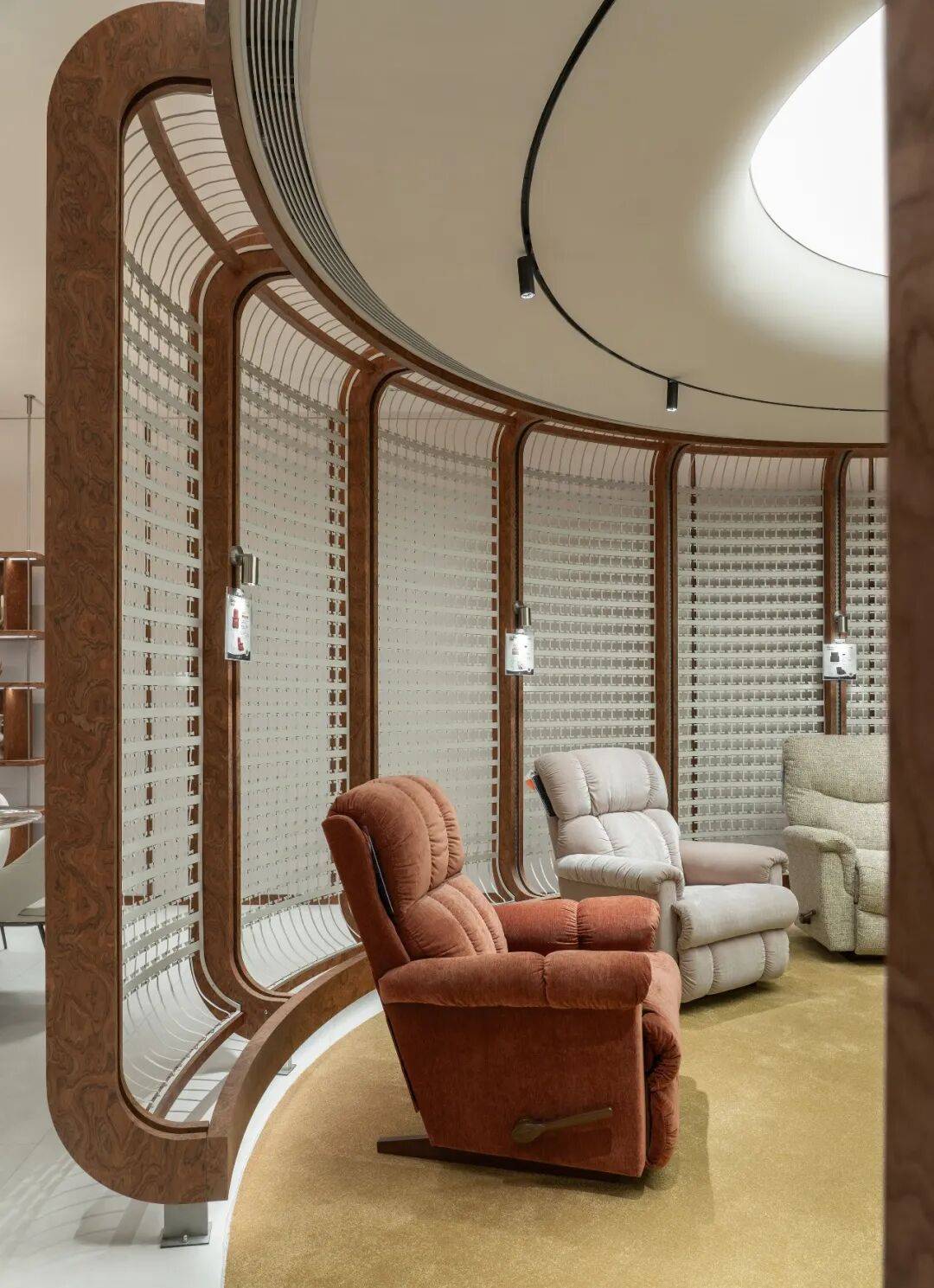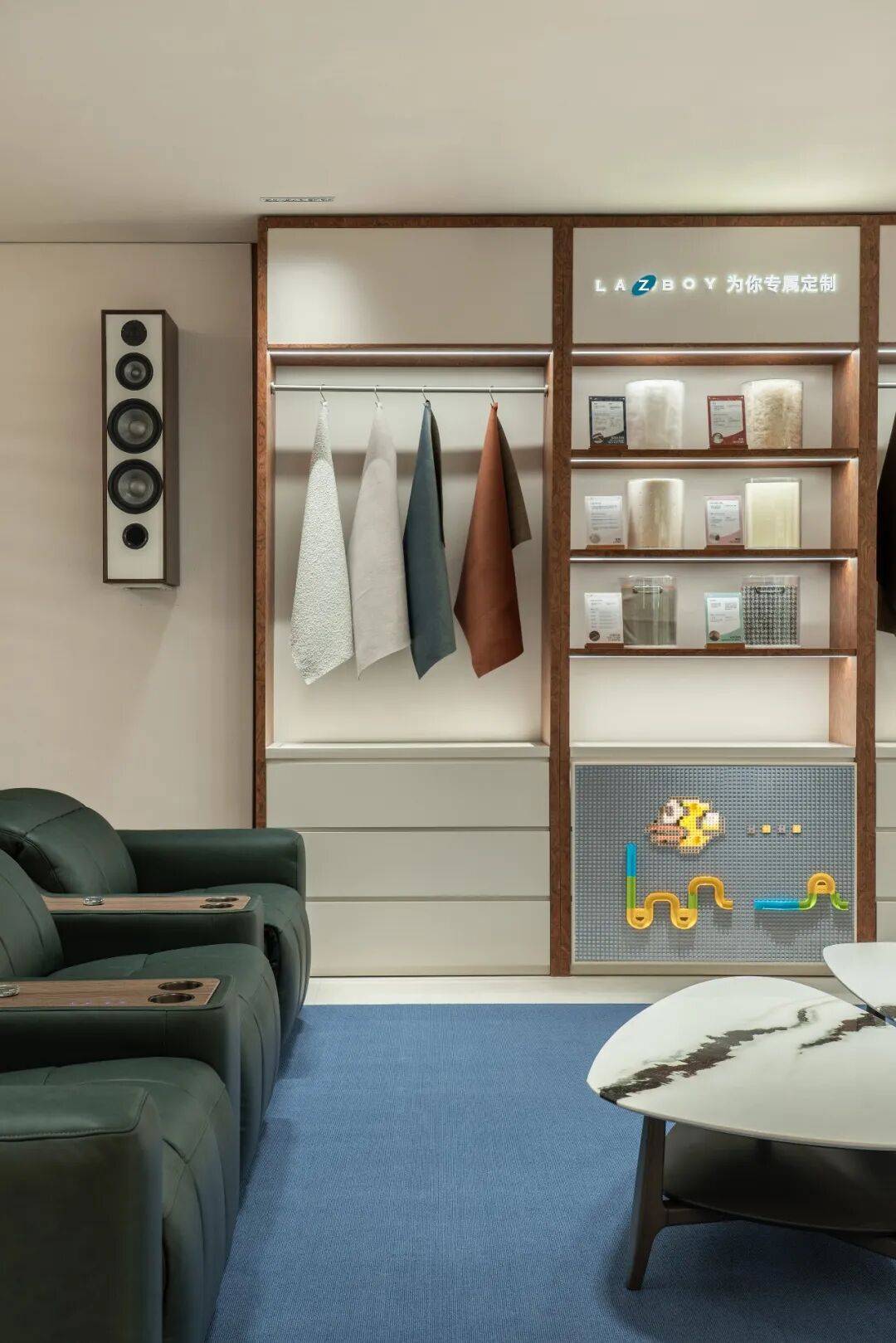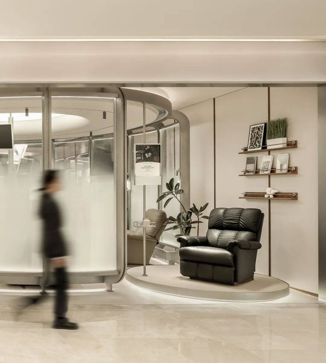 △Kids&Bespoke Display Area 平行世界,自在角落在LAZBOY:调节一个角度,便切换一个世界。从端坐到完全躺平,椅子实现了物理形态的“平行”。这“平行”的姿态,开启的是不同的生活状态与沉浸场景——仿佛步入一个平行的自我时空。每一种角度,都对应一种全身心的投入,带来彻底的沉浸与放松。这便是LAZBOY为您创造的“平行世界”,于繁华之处,安放自在角落。 03. 设计细节
