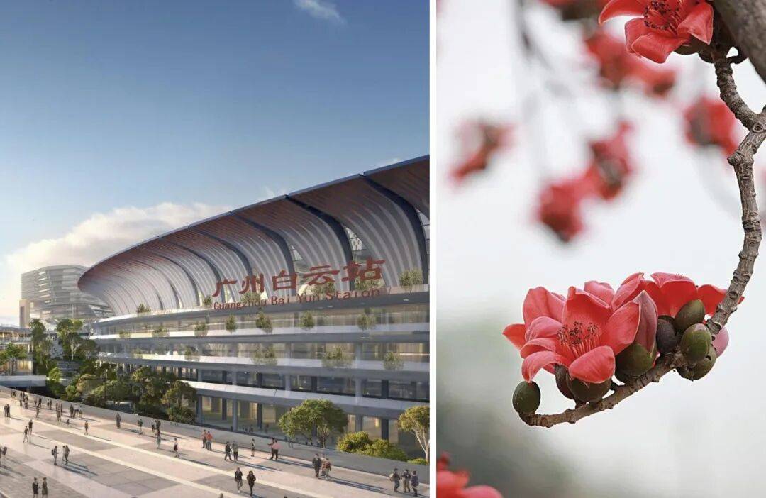 白云站木棉花瓣结构遮阳篷。 东地块双塔楼矗立于广州白云站这一超级TOD枢纽之上,定位为大湾区独角兽企业总部写字楼。我们希望它不仅是在枢纽上盖一座写字楼,更是对传统枢纽上盖办公模式的突破性重塑——从单纯的交通附属,转向一个激发活力的城市节点。从建筑“高山流水”的立面语言出发,让自然的形态与意境在室内空间延续生长,精准回应新兴企业对空间品质、人才吸引与社群连接的深层需求。在集约高效的交通枢纽之上,创造一个有辨识度、与自然人文连接的办公场所。 同源逻辑下的双重空间转译 在统一的逻辑源头下,东地块两座塔楼依据其不同的公共属性,生长出姿态各异的空间形态。 01. 东北塔 "木棉成序"
