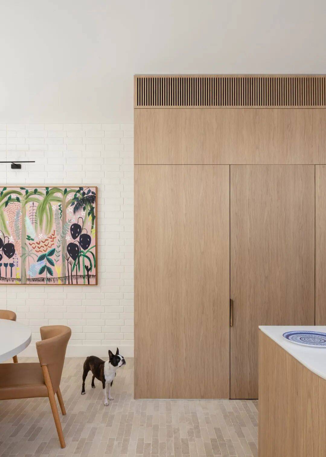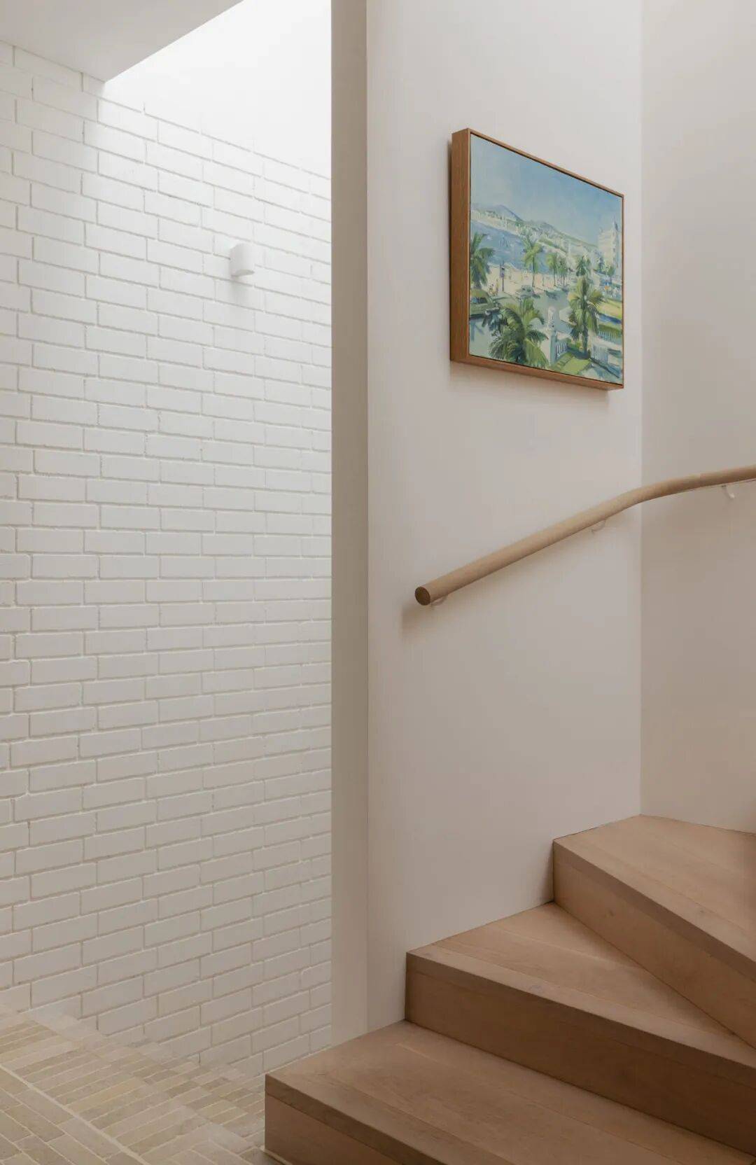 在材料使用上,Moon House 结合了砖、木材、玻璃与现代涂饰材料。外立面部分区域采用砖材,以回应周边历史住宅中常见的材料类型;木材主要用于室内与半室外空间的细部处理,作为过渡性材料连接内外空间;玻璃则用于主要开窗位置,以增强采光条件并建立与外部环境的视觉联系。不同材料在建筑中根据功能与位置进行配置,形成清晰的使用逻辑。