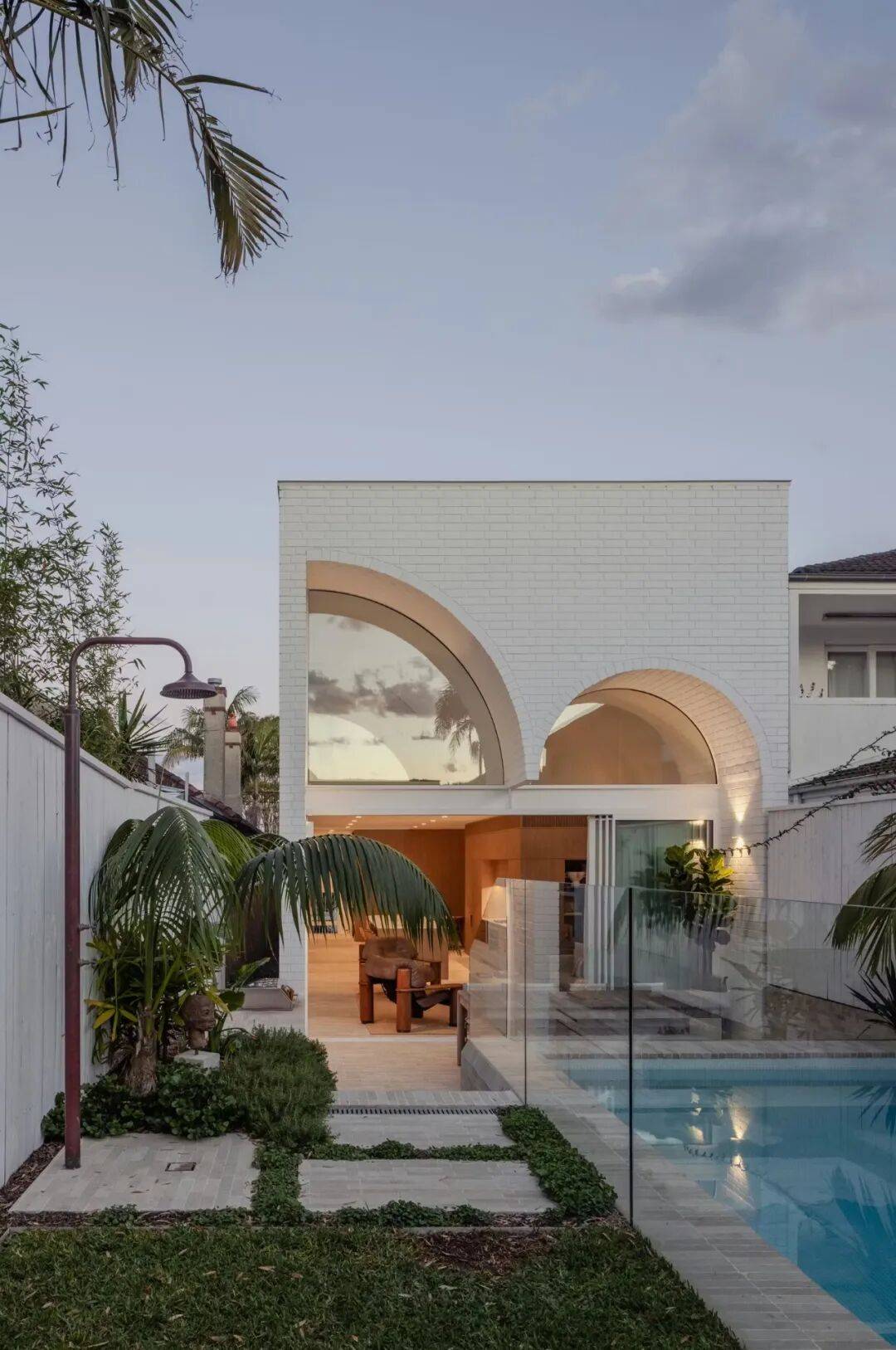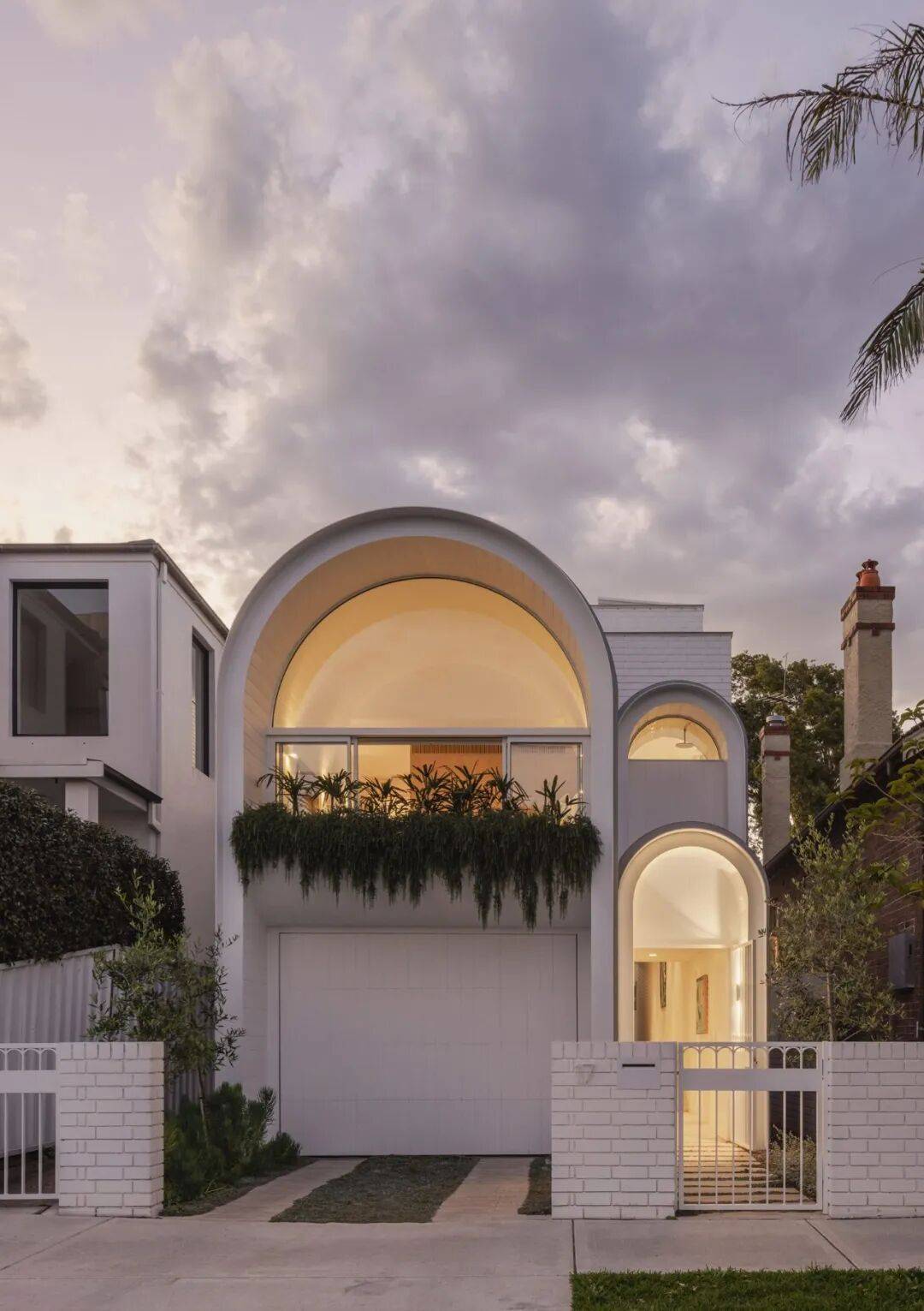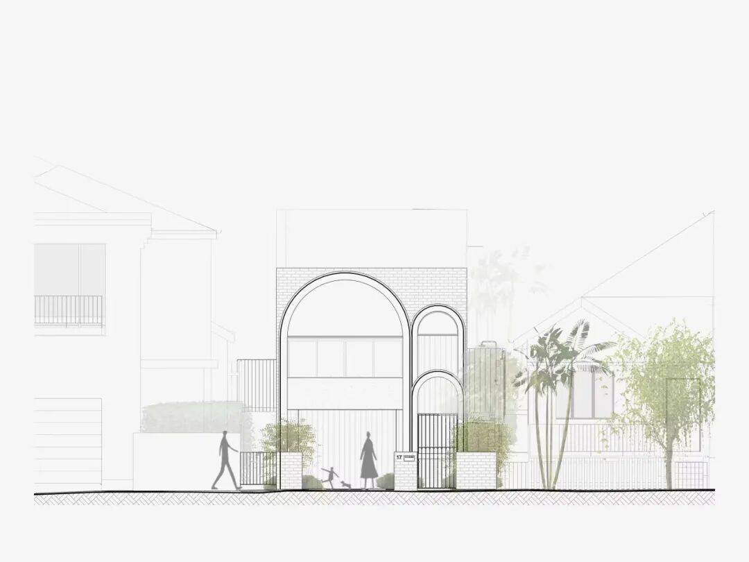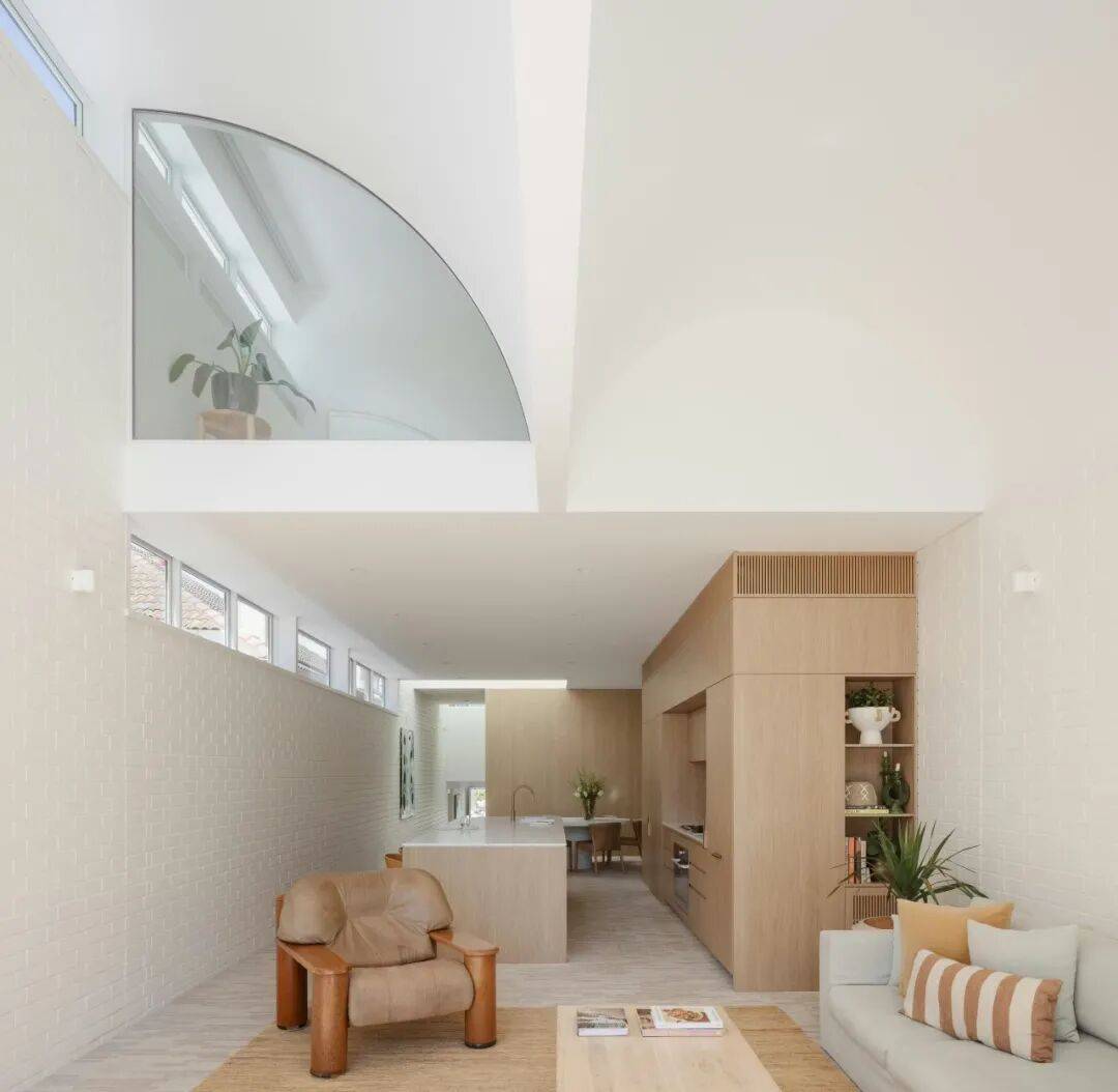 由悉尼建筑事务所 James Garvan Architecture 设计的 Moon House,位于澳大利亚新南威尔士州悉尼的 Waverley 区,是一座在既有住宅街区中建造的独立住宅项目。项目选址于一片以历史时期住宅为主的街道环境中,周边多为具有明确年代特征的传统住宅建筑。Moon House 的设计在总体尺度、立面构成与空间组织上参考了邻近历史建筑的比例关系与街道秩序,并在此基础上采用当代建筑语言进行表达。