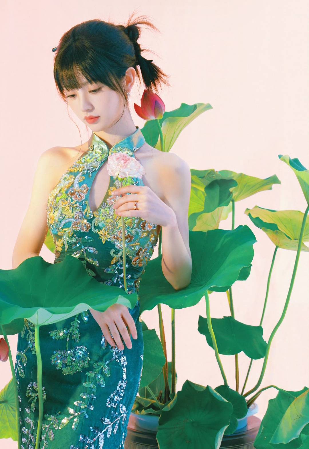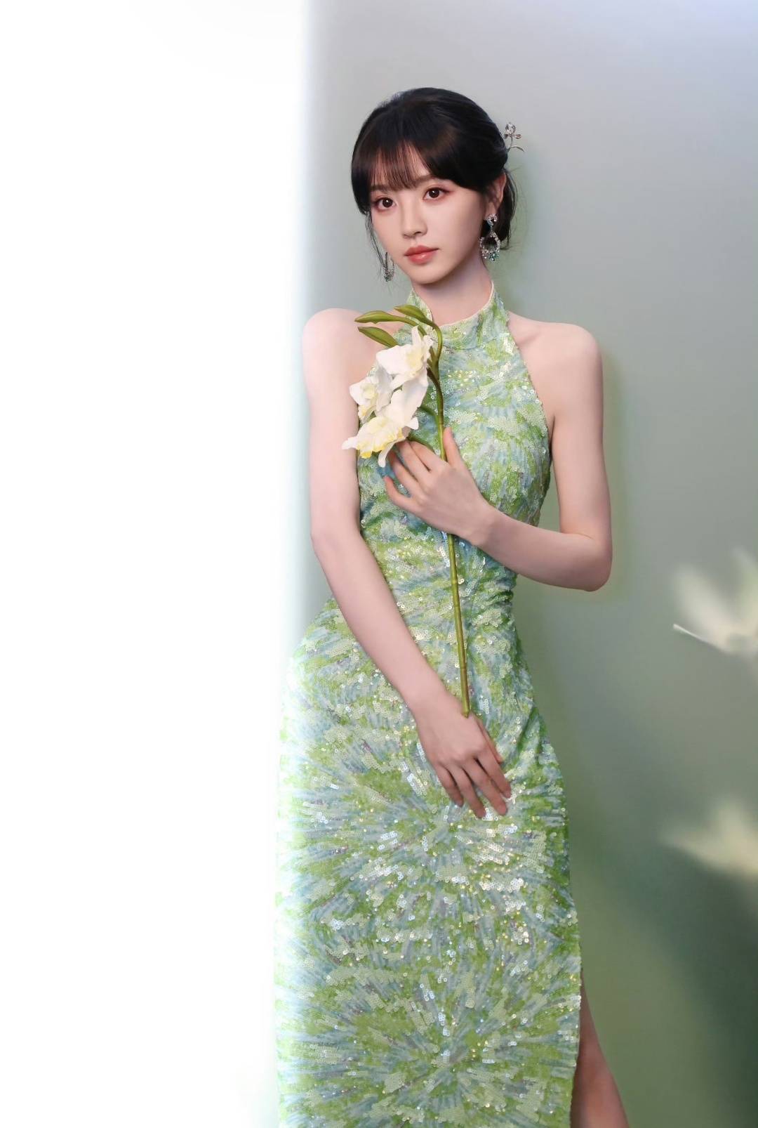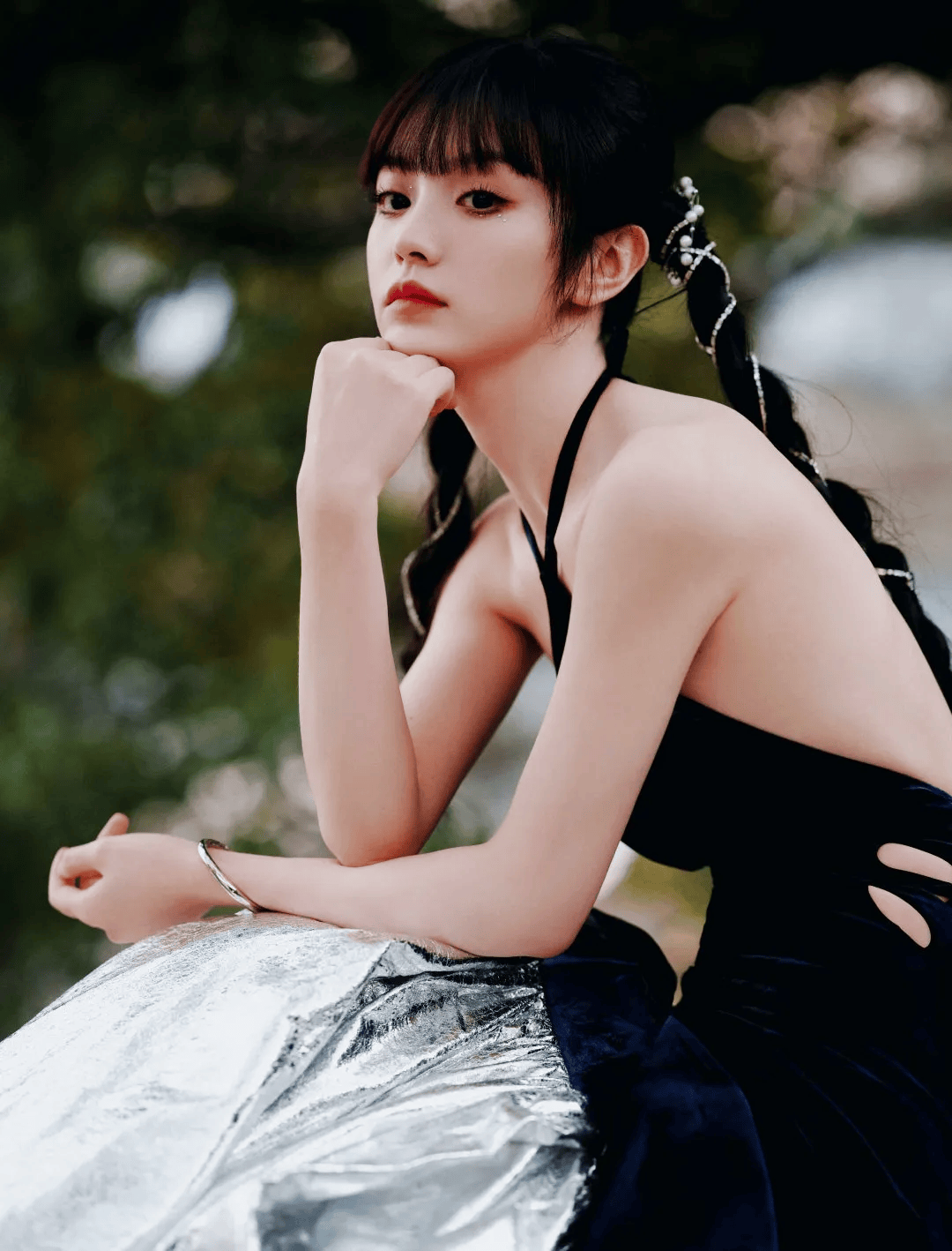 齐刘海常常会让人显得太幼态,吊带又容易显得太成熟,这两个元素但凡平衡不好,就容易翻车。可她偏偏把两者揉在了一起,甜里带着一点小性感,辣里又透着一丝少女的娇憨。那种分寸感拿捏得刚刚好,多一分就腻,少一分就淡。