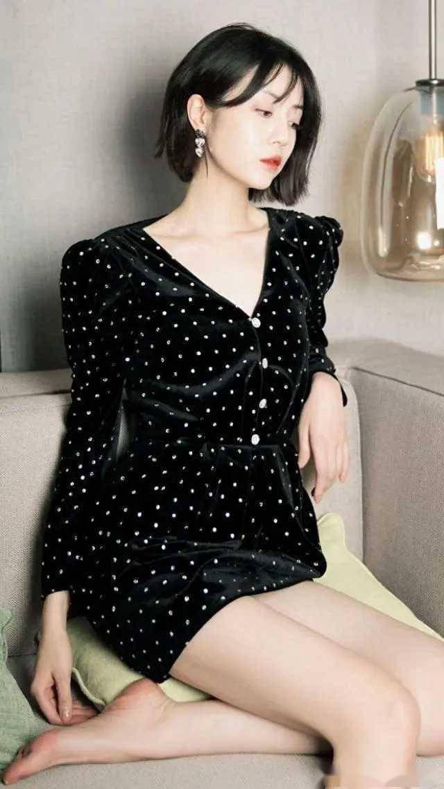 她的连衣裙搭配也很值得借鉴——那件黑色修身款搭配高跟鞋,简洁利落又不失女人味,适合职场穿;那件丝绒波点裙摸起来特别柔软,还带着丝丝光泽,穿在朋友生日会的场合里,瞬间就让人觉得格外有气质;还有一条亮片裙,巧妙的挖空设计正好露出一点胸口,性感而不张扬,穿去小酒馆或约会都很合适,低调中透着惊艳;最有趣的是那件拼接西装,卡其色与黑色的搭配,左边像通勤装,右边又像准备去蹦迪,配上一条短裙,瞬间打破了西装的严肃感,既适合上班,又有点小个性,比单一的西装有趣多了。