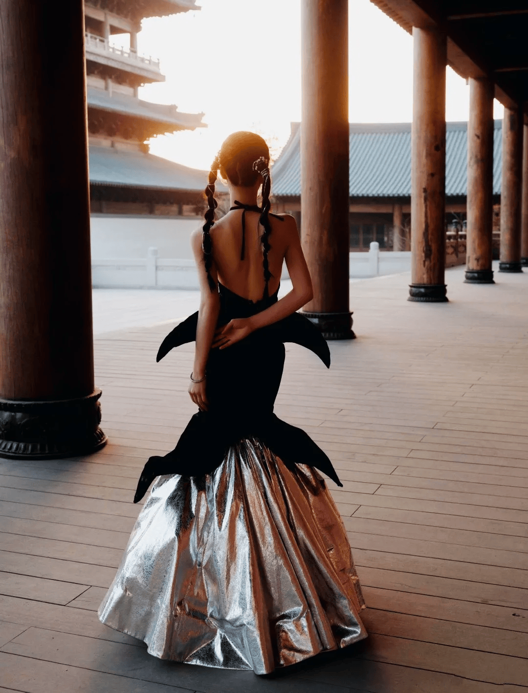 性感张力:深V吊带、挂脖露背设计凸显直角肩与蝴蝶骨,黑色系搭配薄纱或蕾丝材质,暗黑中透出冷艳。