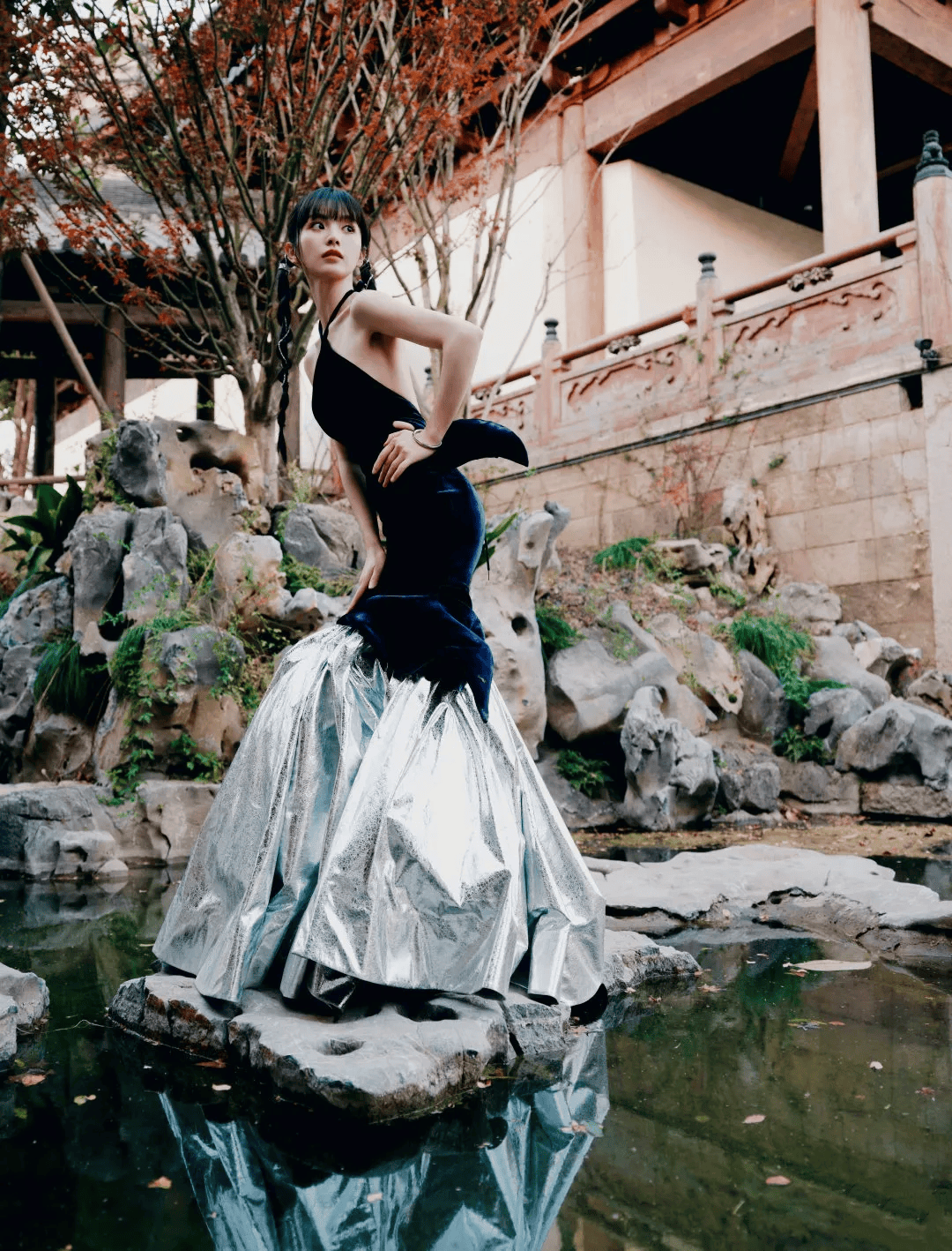 拒绝单一标签,以“甜御反差”为核心:稚气童颜驾驭深V礼服,纯真眼神碰撞犀利妆容,实现“白切黑”美学。