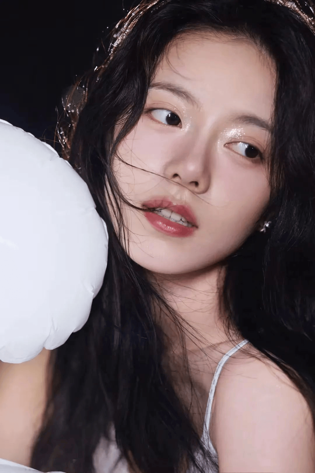 褪去稚气的赵今麦化身暗夜精灵。十套造型无一例外选择修身黑色吊带裙,却在细节处玩尽花样:亮片如银河倾泻肩头,银钻似碎钻缀满裙摆,蕾丝镂空若隐若现勾勒曲线。最绝的是她彻底抛弃高跟鞋束缚,赤足踩在沙发、地毯甚至书本堆上。光洁脚背与深色家居环境碰撞出极致诱惑,随手甩落的红色高跟鞋成了点睛之笔——仿佛在宣告:“舒适才是最高级的性感。”