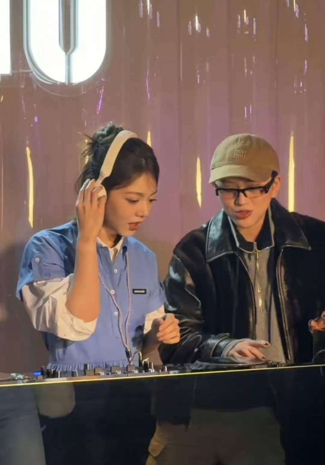 活动现场人气爆棚,每层楼都挤满围观人群,手机举成一片灯海。本来只是正常看秀互动,没想到现场还有打碟体验环节,赵今麦当场化身新手DJ,认真跟着老师学习操作,眼神专注又有点小紧张,笨拙又可爱的样子反差感拉满。