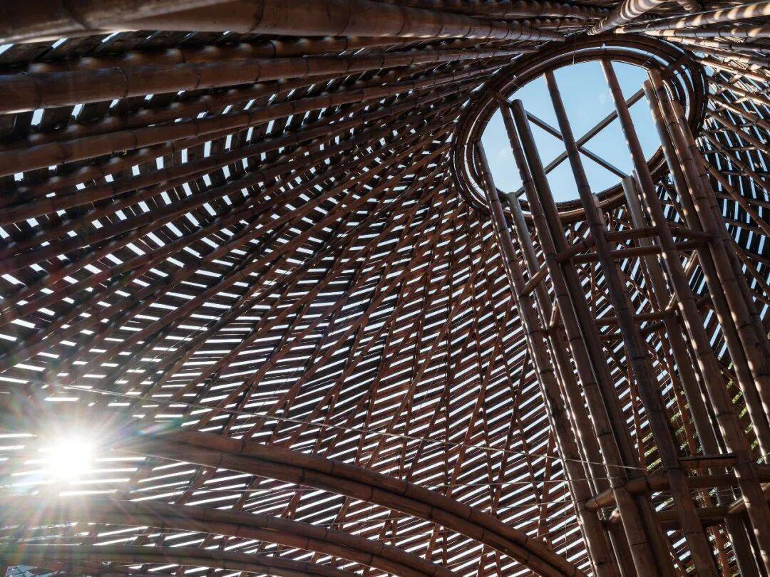 伞状散开的竹结构与钢拉索©️朱润资