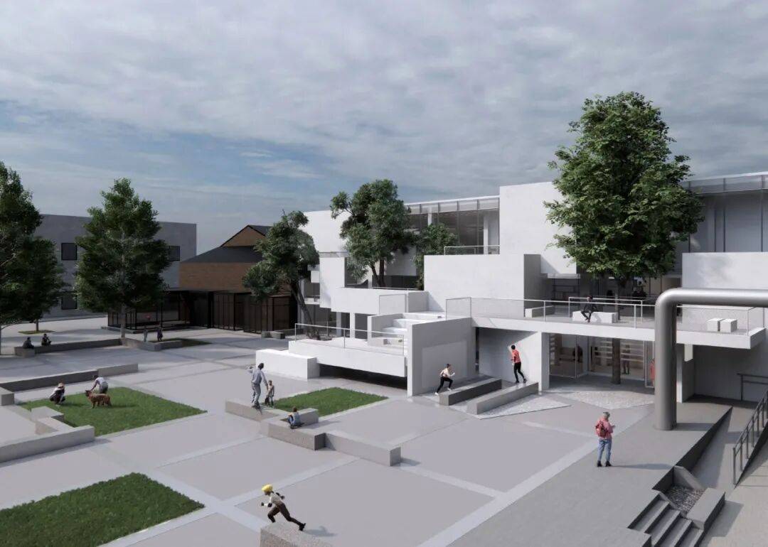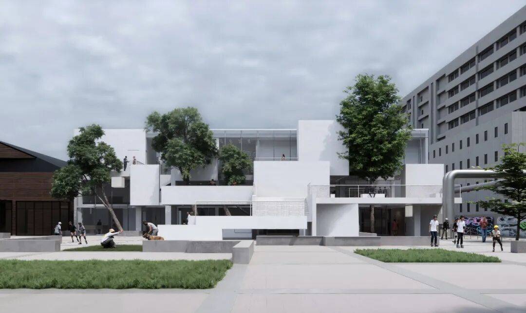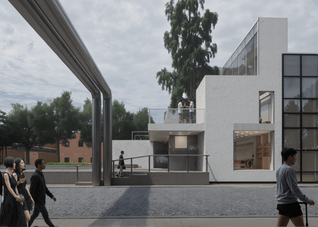 北立面主广场效果动图 ©waa 时间不再是线性的。过去,现在和未来如同横截面一样通过时间在一个场景内层层分开。 概述 本项目位于北京的七九八艺术区,该区域是过去数十年间由公共资金主导、以艺术文化为核心发展成熟的旧工业区城市更新典范。原建筑拟改造为集学习中心与旅游服务于一体的复合空间,旨在依托区内现有文化及艺术机构及画廊资源,为年轻群体尤其是青少年提供一个深度艺术教育的拓展场所。