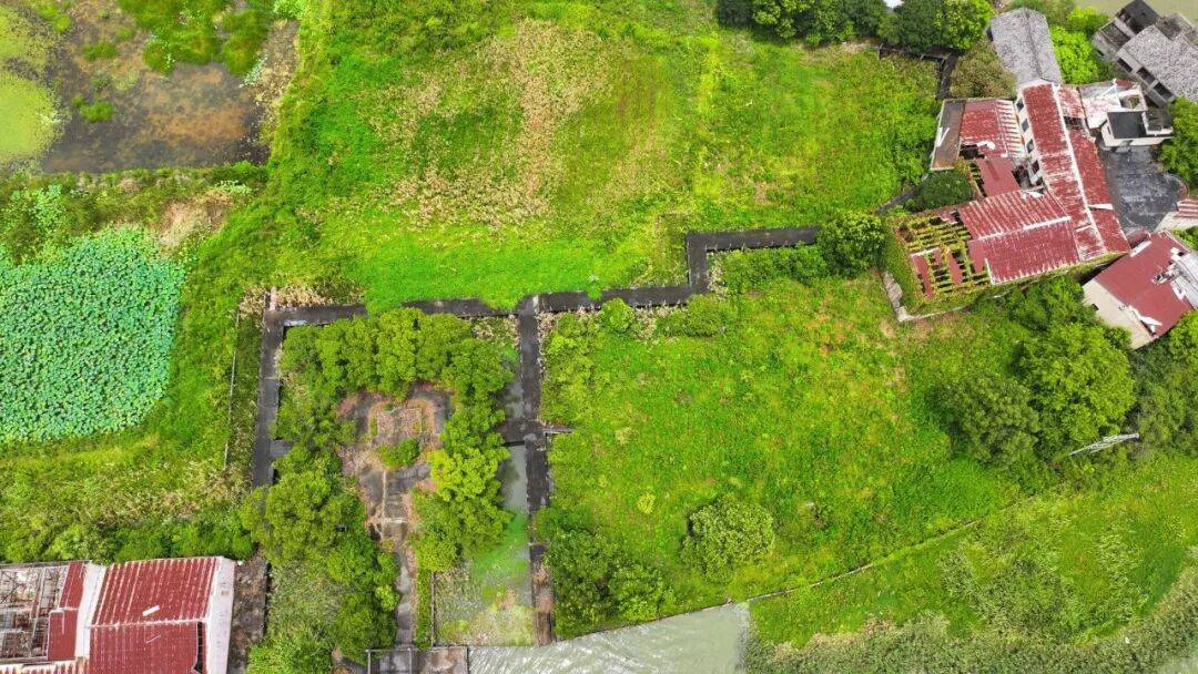 改造前原生态状态下的生态岛码头及小广场©️三青色 生态岛码头:最小干预的野趣留存 生态岛静卧于芙蓉池西侧,呈现出一片未被刻意修饰的原始面貌。岛上野草蔓生,旧厂房悄然伫立,几年前试种的荷塘已自成景致。穿过水上老石板栈道,可见一座掩于林木下的矩形小广场与石砌的码头牌坊。这片被水域环绕的孤岛,因其荒寂与宁静蒙上了一层浪漫主义的色彩。