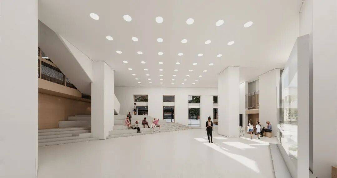 主立面动图 ©waa 模式 我们优先关注年轻访客与项目方的空间包容性需求及归属感。采用“多元共治”模式——由运营团队集中管理,同时为项目方提供充分的空间自主性与展示面,将其功能有机嵌入立面体系。上层空间设置为“教育市集”,由5至20平方米不等的微教室集群构成;首层配备可容纳300人的多功能厅及画廊空间,服务于区域大型节庆、展览与学习交流活动。