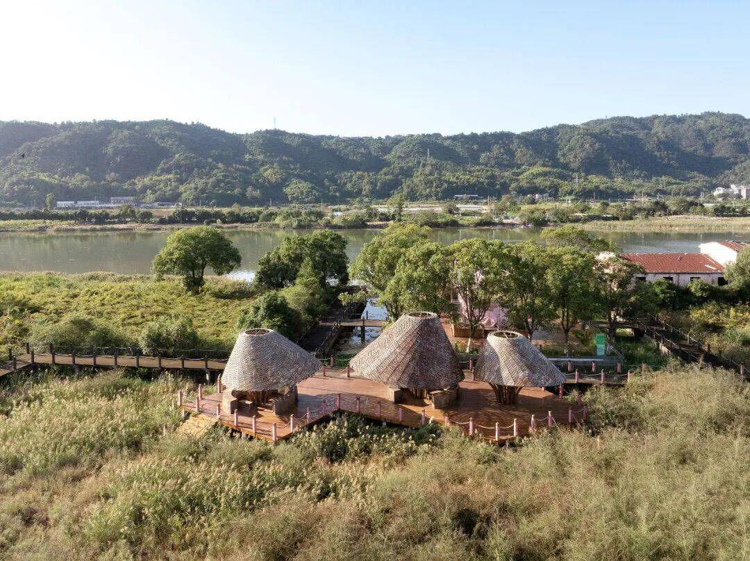 清江芙蓉亭鸟瞰©️朱润资 背景 清江镇坐落于雁荡山北麓与乐清湾之间。作为环乐清湾生态廊道的重要腹地,芙蓉池片区以其优美的自然环境与深厚的人文积淀,成为区域协同发展的关键节点。本案以近郊农文旅发展为脉络,聚焦芙蓉池两岸,通过重塑生态岛码头与对岸清扬公园的景观节点,并重启连接二者的短途航线,旨在将这片水域转化为一处融合生态探索、文化浸润与休闲体验的沉浸式目的地,完成一场对“荒野诗意的生态转译”。