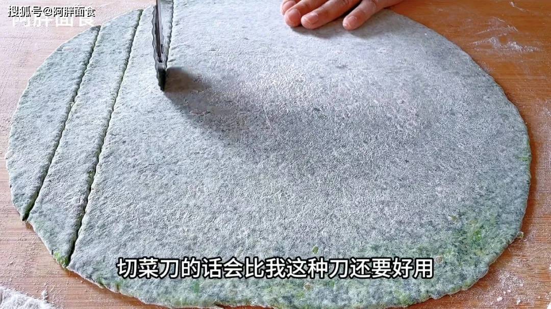 7、不管是用家里的菜刀,还是披萨切刀,把这面片,先分成宽约2厘米的条。