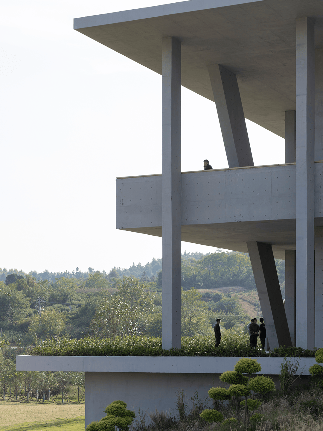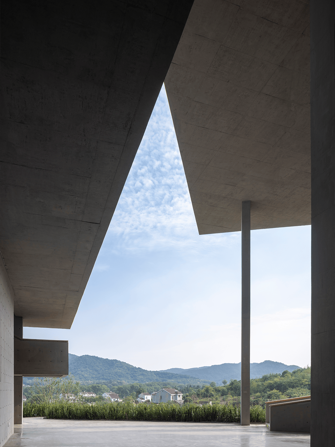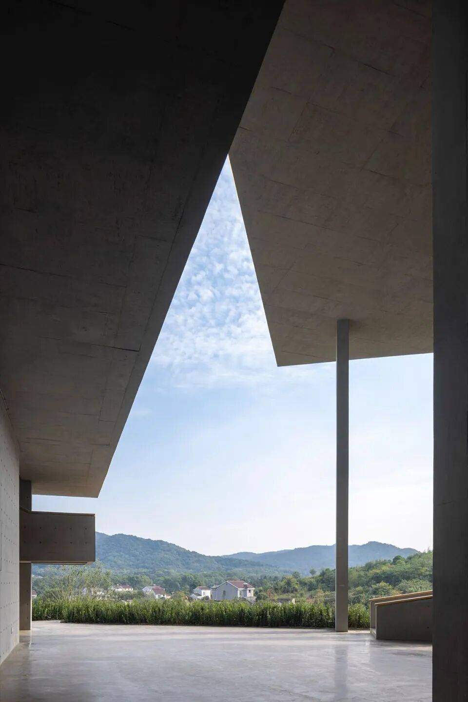 ▲轻盈、舒展的建筑形态©存在建筑-建筑摄影 清水混凝土取之于自然,其呈现出的真实、质朴、安静与力量感,正是万山电影公园想要传递的设计内核。设计团队希望这座建筑能够融入乡野,不哗众取宠,不喧嚣张扬,以最本真的姿态,为每一位到来者提供一方安放情绪、感受光影的有趣场所。修长的柱廊如同树木的枝干,向上生长,稳稳承托着轻薄的屋盖,既赋予建筑轻盈的视觉感受,也暗合了乡野草木的生长意象。