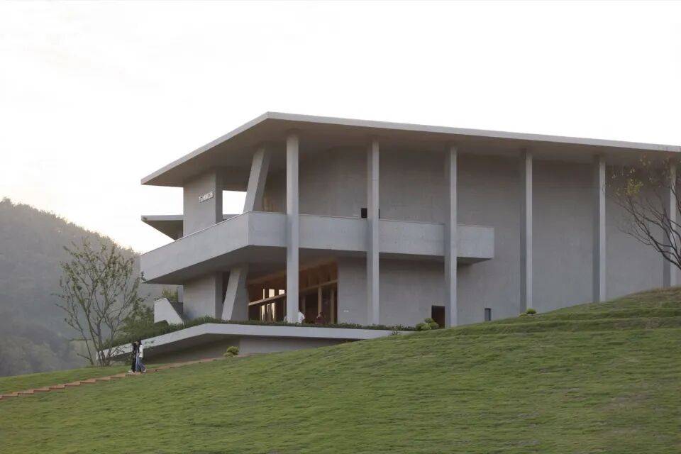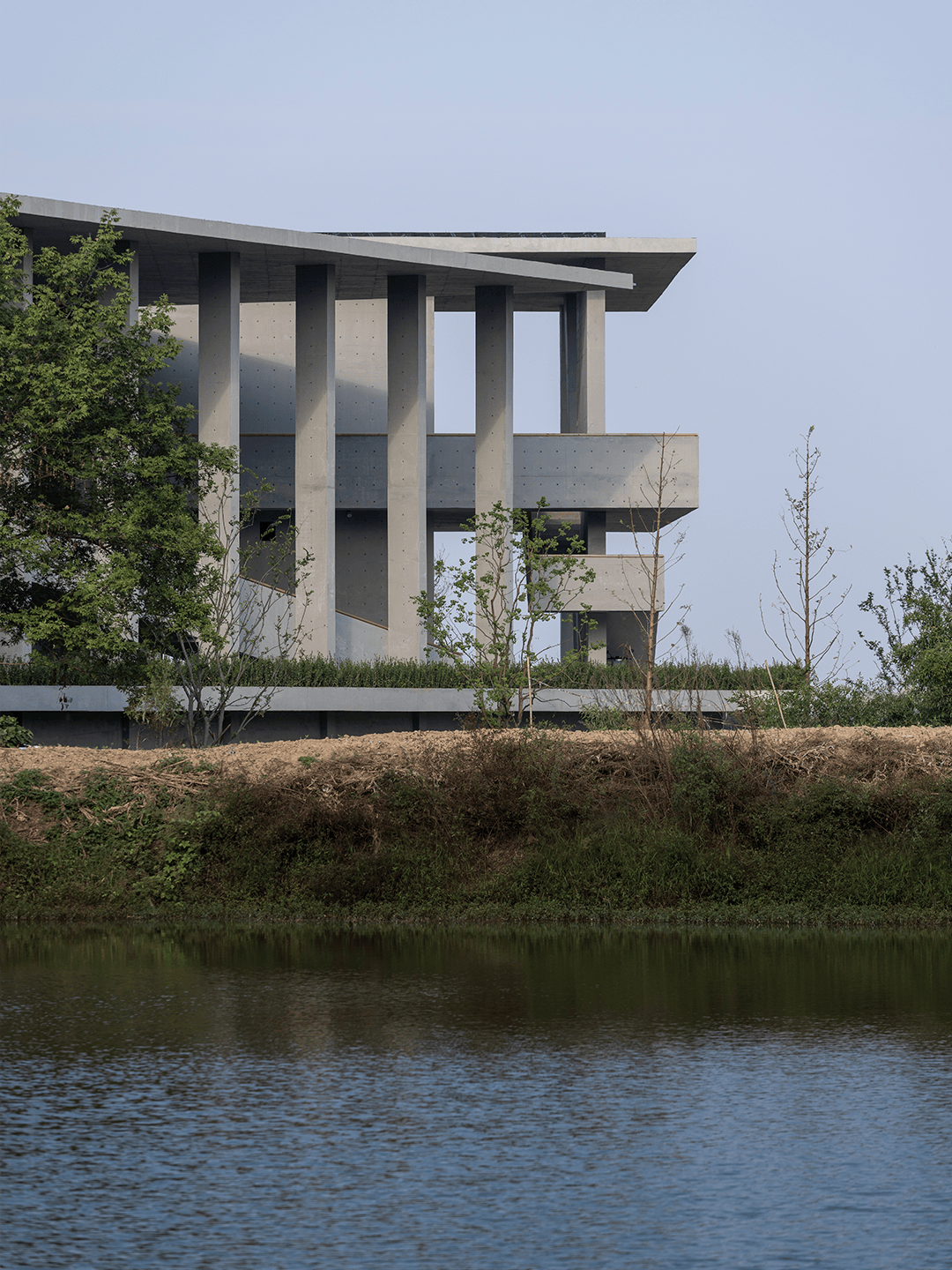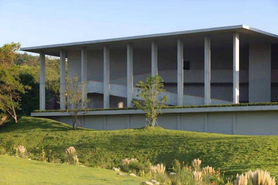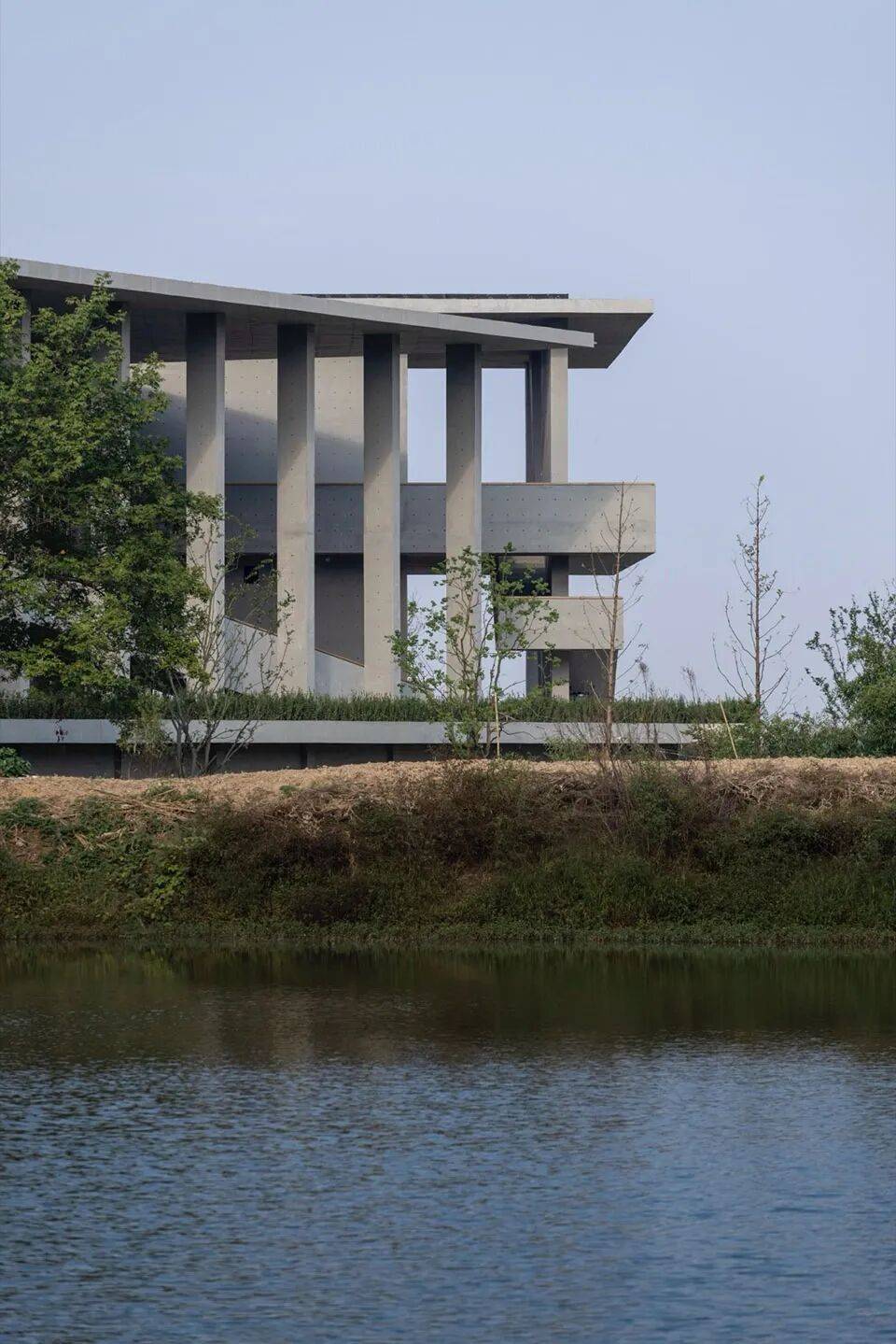 ▲由河水看建筑© 存在建筑-建筑摄影 在满足影厅尺寸规范、保障观影体验的实用性前提之下,设计团队始终追求空间与形式的共生之美。整个建筑摒弃冗余装饰,以清水混凝土的原生质感为核心表达,线条简洁有力,体量错落有致,与周边的乡野草地、自然景致形成和谐对话,恰如从土地中自然生长而出,不着粉饰,却自有力量。