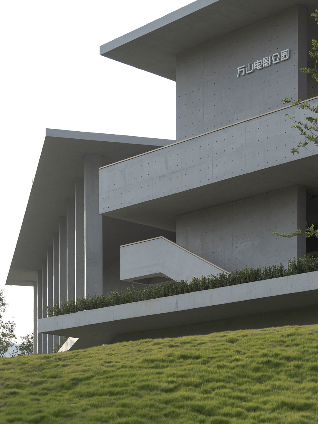 © 存在建筑-建筑摄影 在乡村振兴的时代浪潮中,建筑师正以设计为桥,联结乡土本真与现代生活,为乡村注入新的文化活力与空间质感。坐落于安徽万山的万山电影公园(原万山山谷电影院),作为全国第一家乡村公共电影院,以一座高品质清水混凝土建筑的姿态,扎根乡野肌理,打破乡村文化空间的固有边界,既承载着光影叙事的功能需求,更以极致的材料表达与空间营造,成为乡村公共建筑创新实践的独特范本。
