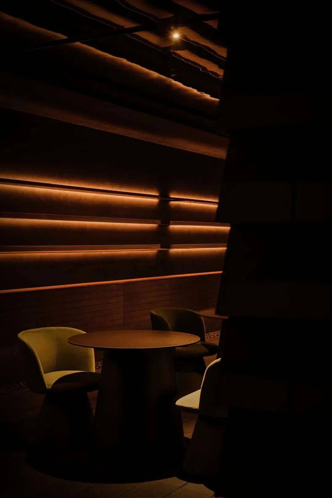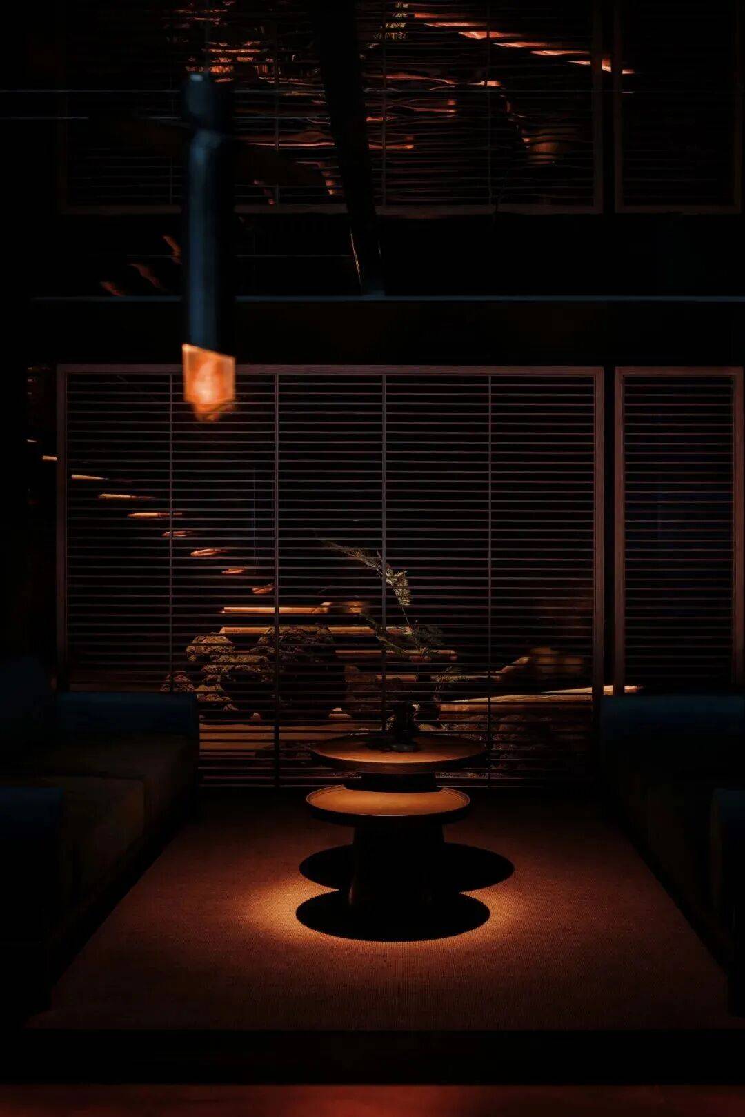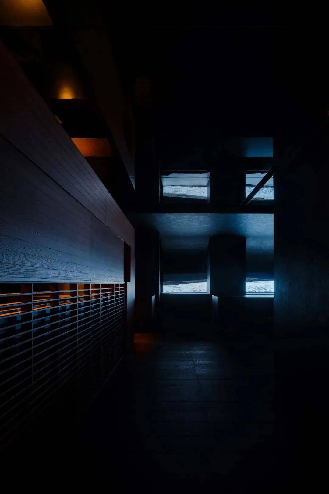 ▲室内的光影 ©龙合辉 夜晚则呈现另一种景象。内部灯光透过格栅与玻璃向外扩散,建筑像一只被点亮的器物,在城市中散发柔和的光。文化活动在此成为城市夜景的一部分。