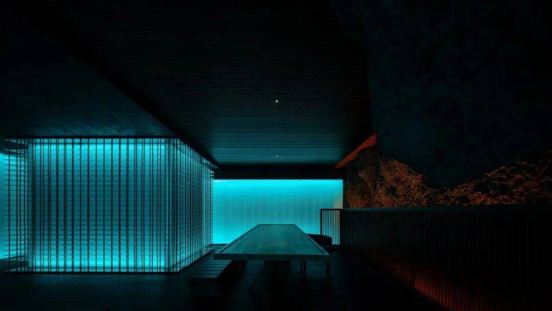 03. 疗愈幻境 浸没无垠蔚蓝 空间光源巧思融合冰岛蓝湖的自然光影特质,铺就松弛的情绪底色。 仿似深入地下的疗愈栖所,是Boolu Retreat Hotel的内核,浸没与无垠蔚蓝,隔绝外界所有喧嚣,以地热湖水的温润与火山岩石的沉厚为空间经纬,筑就纯然无扰的疗愈秘境。 时光在此褪尽尘扰,身心自然轻舒。