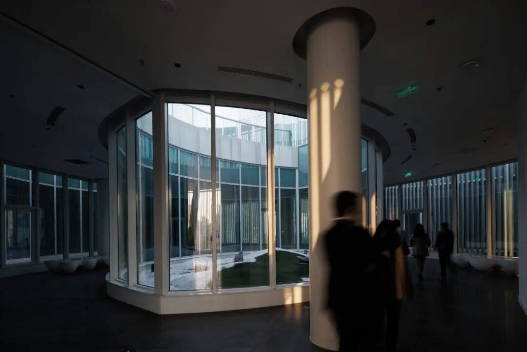 ▲东入口广场 ©龙合辉 艺术馆的第一层并没有完全封闭,而是通过底层架空与开放空间的方式,将城市活动引入建筑内部。 这一策略可以被理解为对“负空间”的雕刻:建筑并不是简单地占据场地,而是通过让渡部分空间,使城市生活在其内部流动。市民可以在建筑底层停留、穿行、聚集,而不必立即进入展览空间。