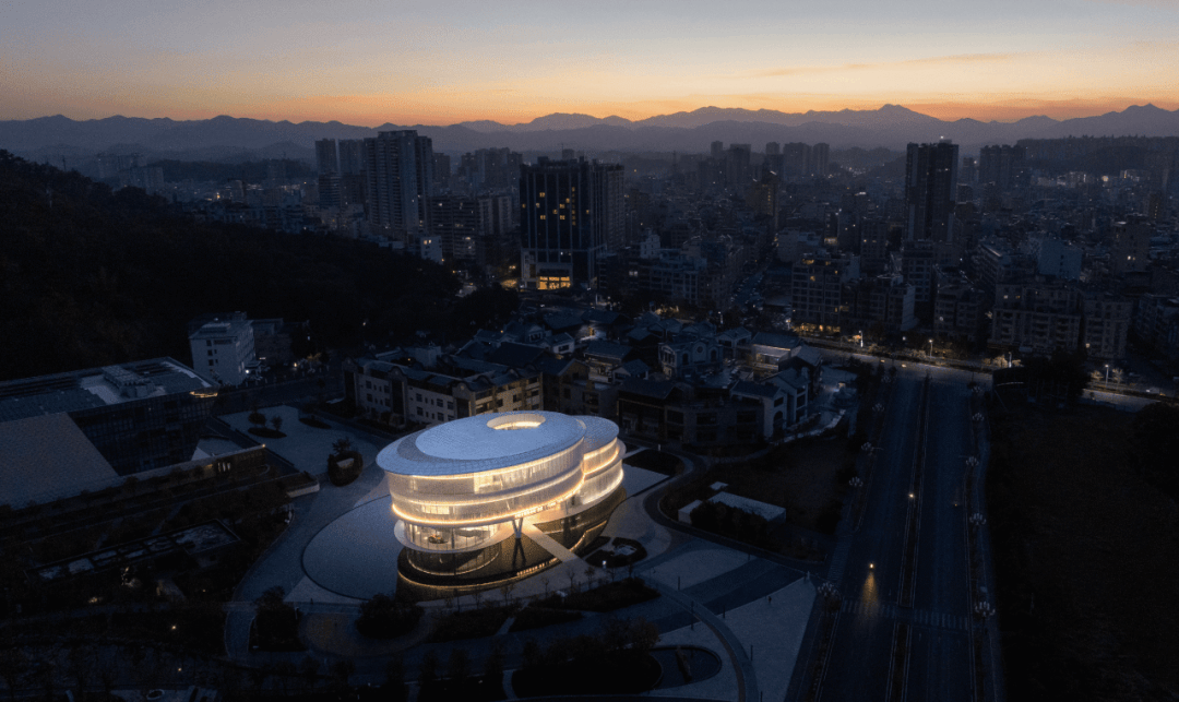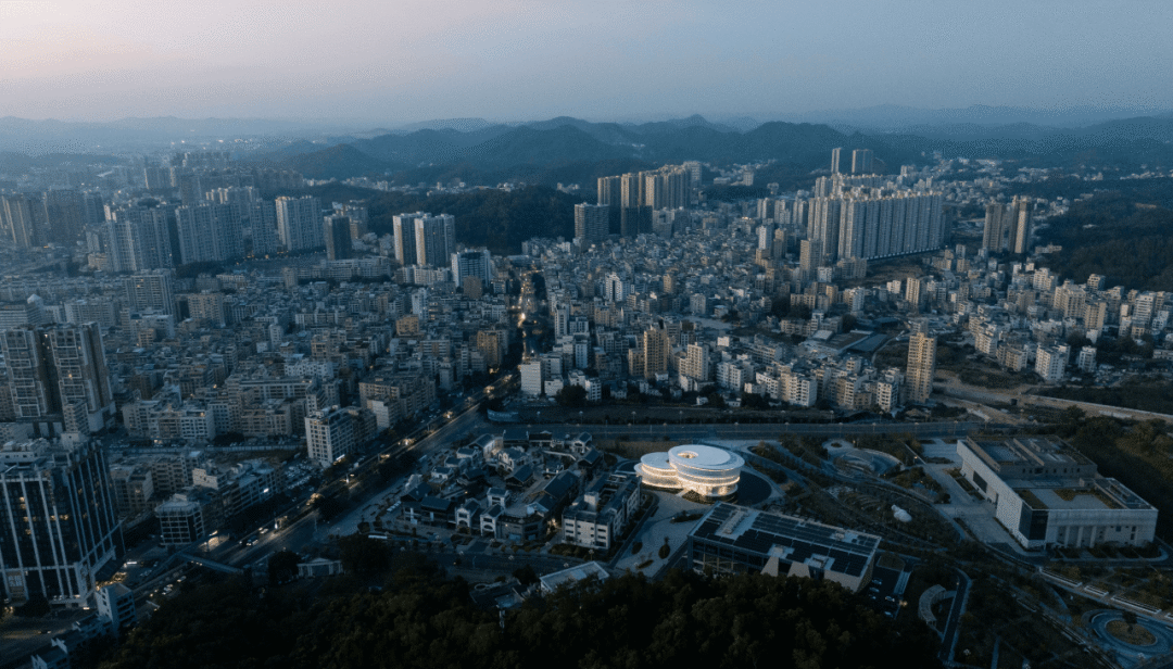▲项目鸟瞰 ©龙合辉 “象牙微刻,万象入微。” 在中国传统工艺中,牙雕从来不是简单的材料加工,而是一种对时间与细节的凝视:刀锋所及之处,山河、云气、神话与历史层层展开。位于广东信宜市的中国牙雕艺术馆,正是这样一件被放大的“雕刻作品”。它不仅是一个收藏与展示猛犸牙雕艺术的场所,更是一座通过空间叙事将非遗技艺转译为建筑语言的文化容器。 ▲项目视频 01. 从城市节点到文化容器 城脉所聚,艺馆为心