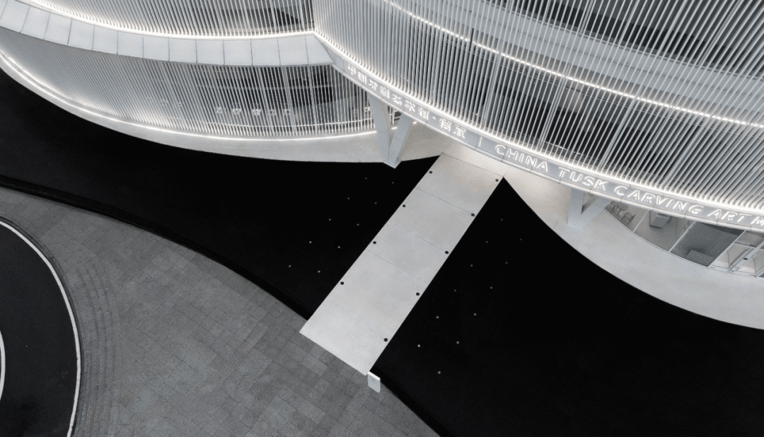 ▲南侧鸟瞰 ©龙合辉 如果说牙雕艺术是时间在材料中的沉积,那么这座艺术馆则是文化在城市中的沉积。 远古猛犸象牙来自冰河时代,在漫长的岁月中被冰雪保存;工匠在其表面雕刻神话与历史,使材料成为文化记忆的载体。