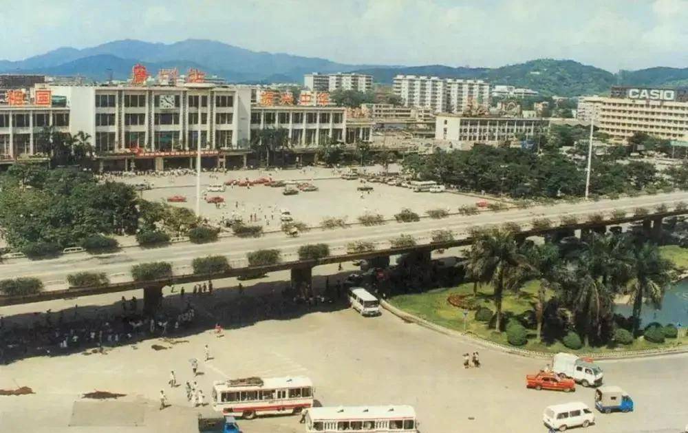 从高处俯瞰广州火车站,曾经的热闹与今天相比虽有所差距,但依旧能感受到那时的繁华。那时的车流量虽然比今天少得多,但依旧涌动如潮,站前广场并不像现在这样被各种围栏隔断,反而显得更加开阔、通透。只是今天的广场,因种种设施而显得略为杂乱,少了几分当年那种自在的气氛。