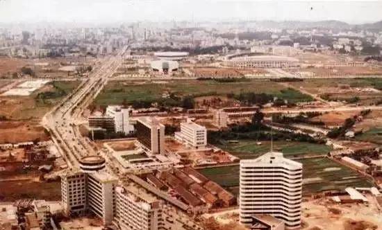 再看天河,那时的天河,很多地方仍然与乡下没什么两样。员村的红砖厂,天河公园沿线大片的田地,简直与现在的现代化都市面貌是天壤之别。最早的天河开发区,或许就是体育中心了。先是现代化的体育场馆拔地而起,紧接着周边的高楼大厦也相继竖起,逐渐形成了今天的天河商务区。