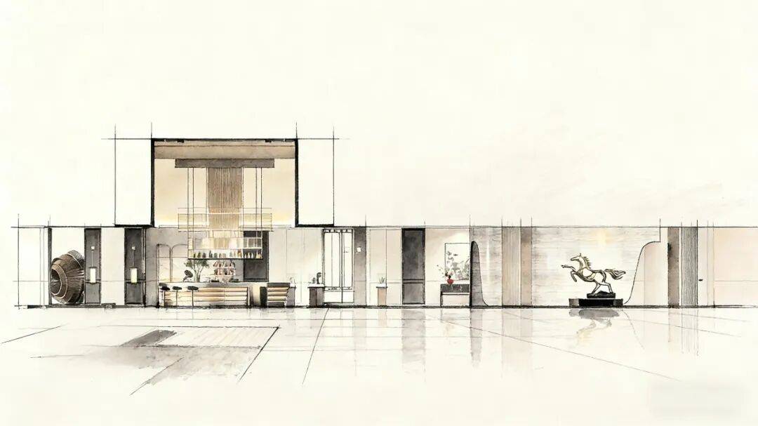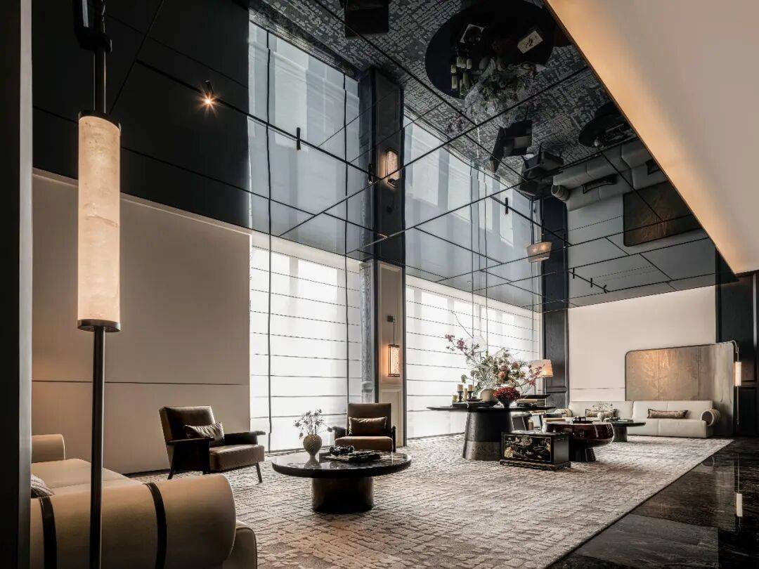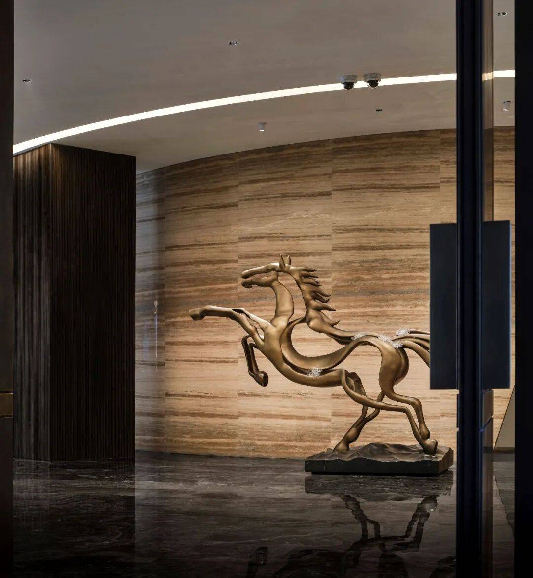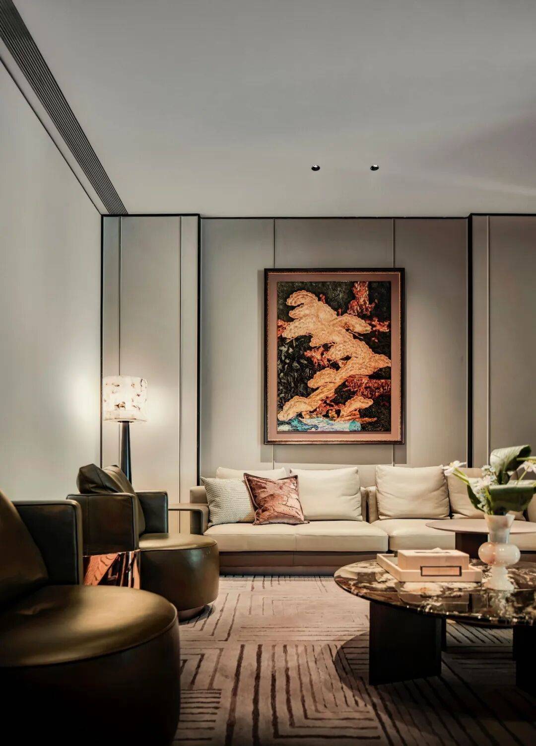 浅洽区:灰镜为顶,引光入室的诗意 灰镜为顶临窗开放的洽谈区是盛唐美学融入当代生活的最深底蕴,唐三彩釉色巧用的四角屏风与大漆肌理展陈的艺术品,宛如唐代宫廷中“裁绫作舞衣,编锦为游幡”般极致考究的物料与技艺,慧眼鉴市,正是这种为极致生活“裁编”而出的色彩、质感与美学,甄选与自身格调相契的“珍品”,此处便是归属的终极之地。