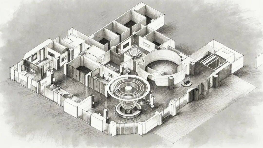 尾声: 设计以细腻的笔触与元素唤醒我们集体文化基因中关于盛唐、丝路与长安的共同记忆,参观成为一场跨越时空的“再相逢”,而在檀府构筑的这个“交易”美好生活的现代“市集”里,设计又巧妙以“入市-游览-问本-落印”为逻辑参观动线,将宏大的历史文化叙事,转化为一场可漫步、可触摸、可参与的沉浸式戏剧,最终,引导访客完成角色转变,入市成为主动的“寻梦贾客”,在古今对话中完成“盛唐交易”,达成对“理想家园”这一终极美好生活的价值确认与精神兑换。