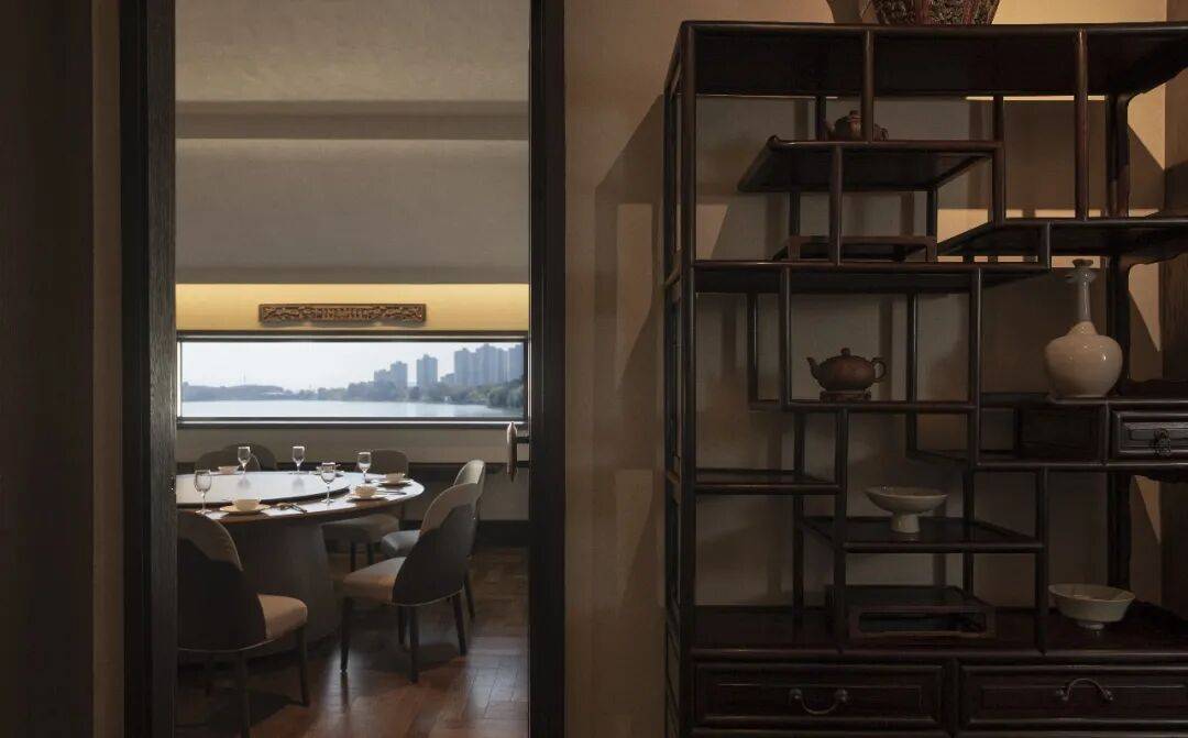 通透是苏式美学的精髓,在空间中体现为两种意境:苏韵绮透和山石剔透。将苏州园林的灵魂之眼“花窗”巧妙化用。不仅在回廊、隔断处可见如苏州园林花窗的传统窗棂;更将“窗”的概念升华。四季厅的巨幅观景窗,包厢内精心设计的观景窗,皆成为“框景”的载体。目光所及,或是李公堤的一湾碧水、几树烟柳,或是室内精心布置的一隅小景、一件艺术陈设,步移景异,处处有画。太湖石“瘦、皱、漏、透”的独特美感,被抽象提炼为空间意象。这不仅是具象的景观石点缀,更体现在通透的设计语言中,这“透”中蕴藏着太湖水的浩渺大气与温婉柔情,使空间气韵贯通,玲珑而深邃。