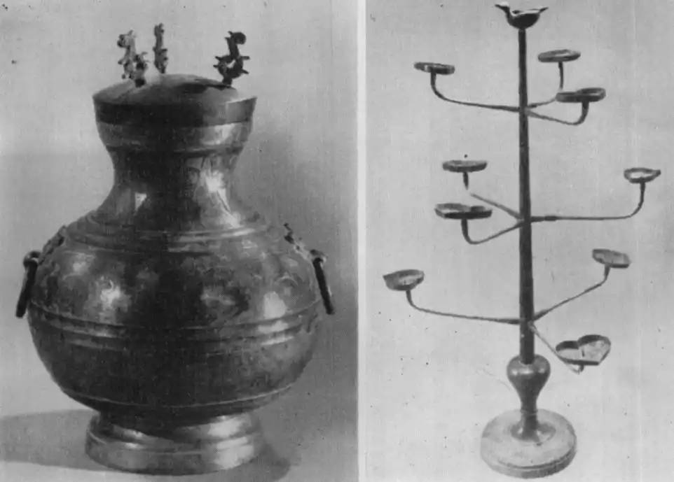 在出土的上千件文物中,大多数光芒耀眼——鎏金铜器、翔鹭纹铜鼓、九枝连盏灯……