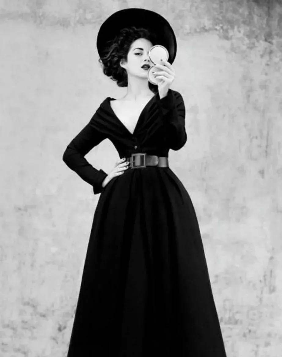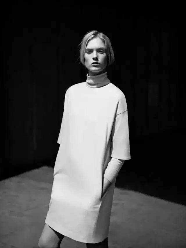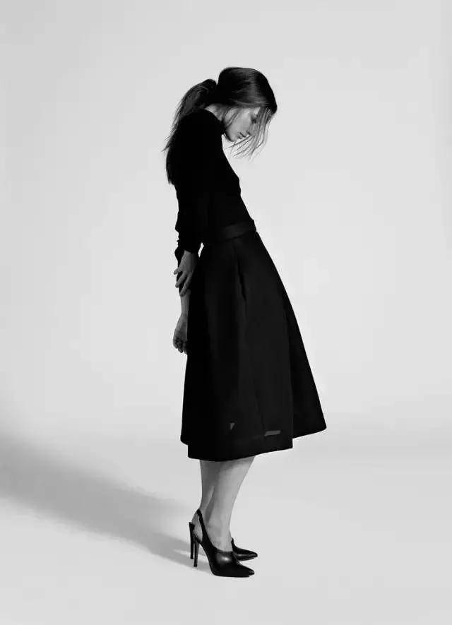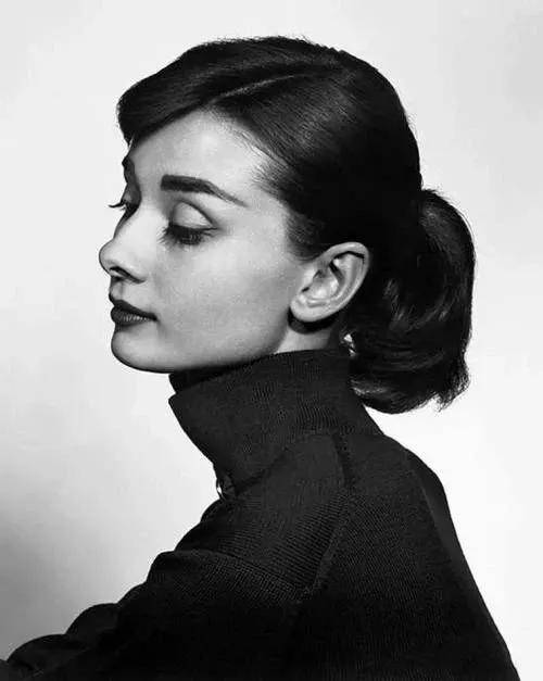 赫本经典的侧颜留影,至今仍被无数人模仿。简洁的白底黑裙,最容易打造优雅的全身肖像。没有多余的装饰,仅凭线条和姿态,就足以成为经典。