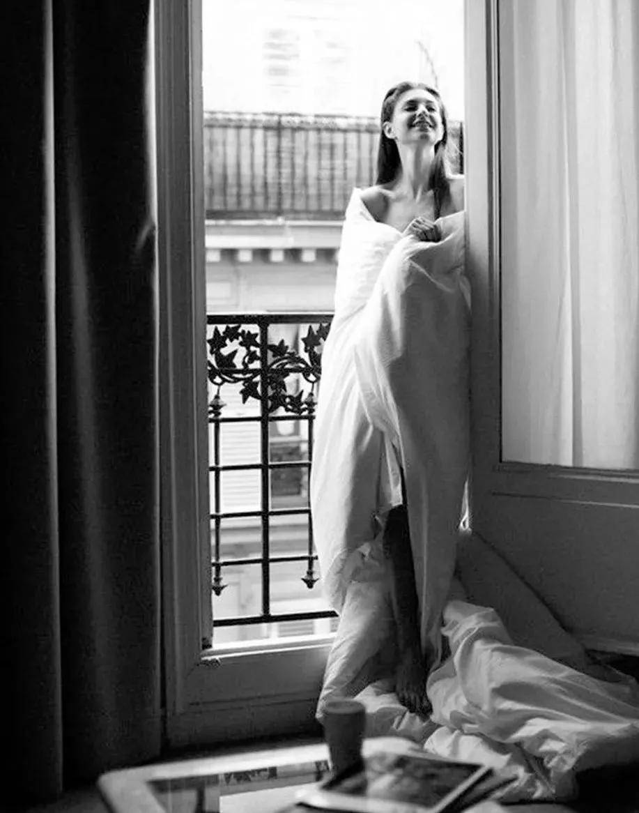 在露台上裹着白色的被子,把清晨最美好的笑定格住。刚醒来的慵懒,阳光的味道,都在那一刻。
