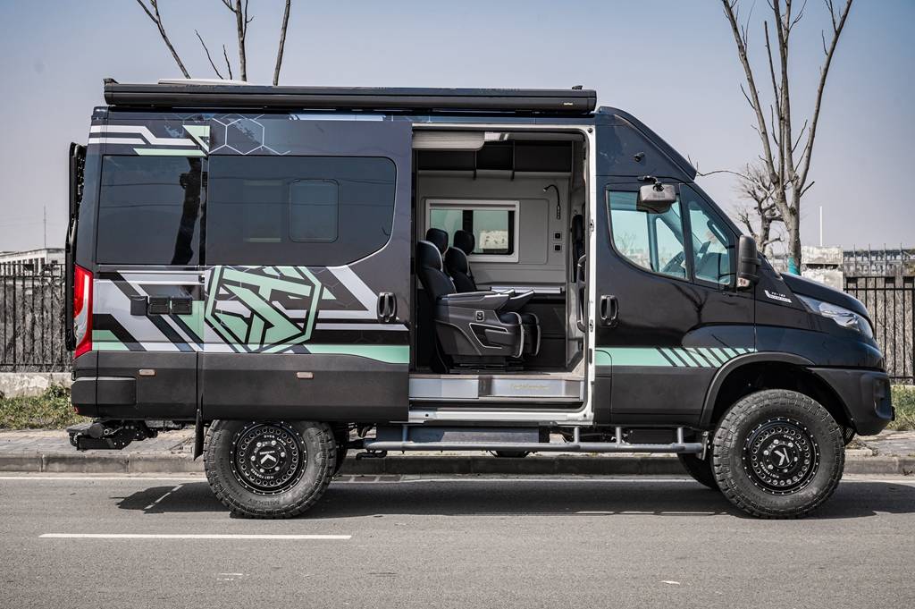 基于意大利原装进口New Daily 4×4底盘打造的硬派B型越野房车,以其出色的越野性能和多功能性,成为了越野爱好者、家庭旅行者以及商务人士的理想选择。以下是这种车型的一些特点: 1. 强大的越野性能:New Daily 4×4底盘提供了卓越的越野能力,包括全时四驱系统、差速锁等配置,使其能够轻松应对各种复杂路况。 2. 蓝牌C1驾照可驾驶:这种车型通常尺寸适中,符合蓝牌标准,C1驾照即可驾驶,使得更多的驾驶者能够享受越野乐趣。 3. 多功能性:既能满足城市日常使用,也能适应户外越野,同时具备商务接待的功能,适合长途穿越旅行。 4. 舒适的内部空间:内部设计兼顾舒适性与实用性,配备有生活区、厨房、卫生间以及睡眠区,适合家庭出游和商务旅行。 5. 高端配置:通常配备有现代化的便利设施,如空调、暖气系统、多媒体娱乐系统等,确保旅途中的舒适度。 6. 安全性能:搭载多项安全配置,如ESP电子稳定程序、ABS防抱死系统等,确保行车安全。 7. 定制化选项:根据不同用户的需求,提供多种定制化选项,如外部工具箱、车顶帐篷、太阳能板等。 8. 动力充沛:搭载高性能柴油发动机,提供强劲的动力输出和良好的燃油经济性。 9. 高承载力:New Daily底盘具有高的承载能力,可以携带更多的装备和物资,适合长途旅行。 10. 时尚外观:外观设计现代且动感,符合现代审美,同时不失硬派越野车的霸气。 综上所述,基于New Daily 4×4底盘的B型越野房车以其独特的优势,在越野房车市场中占有一席之地。无论是追求刺激的户外探险,还是寻求舒适便利的家庭旅行,或是需要一辆能够应对各种场合的商务用车,这种车型都能满足需求。