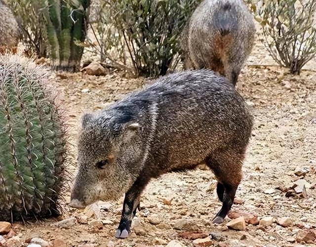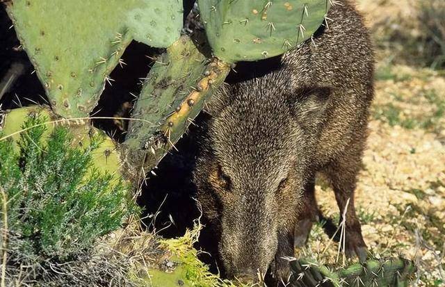 荒漠生存的高手,靠仙人掌过活 草原西貒能在大查科这种严酷环境里活下来,全靠它独特的生存本领,这里水极度稀缺,普通动物很难长时间生活,但仙人掌含水量高,是荒漠里重要的水和能量来源。 仙人掌刺又多又长,别人吃不了,但草原西貒的吻硬硬的,可以反复摩擦仙人掌,把长刺磨掉,再用锋利的牙齿刮掉残余的细刺,只吃里面多汁的果肉和茎干。