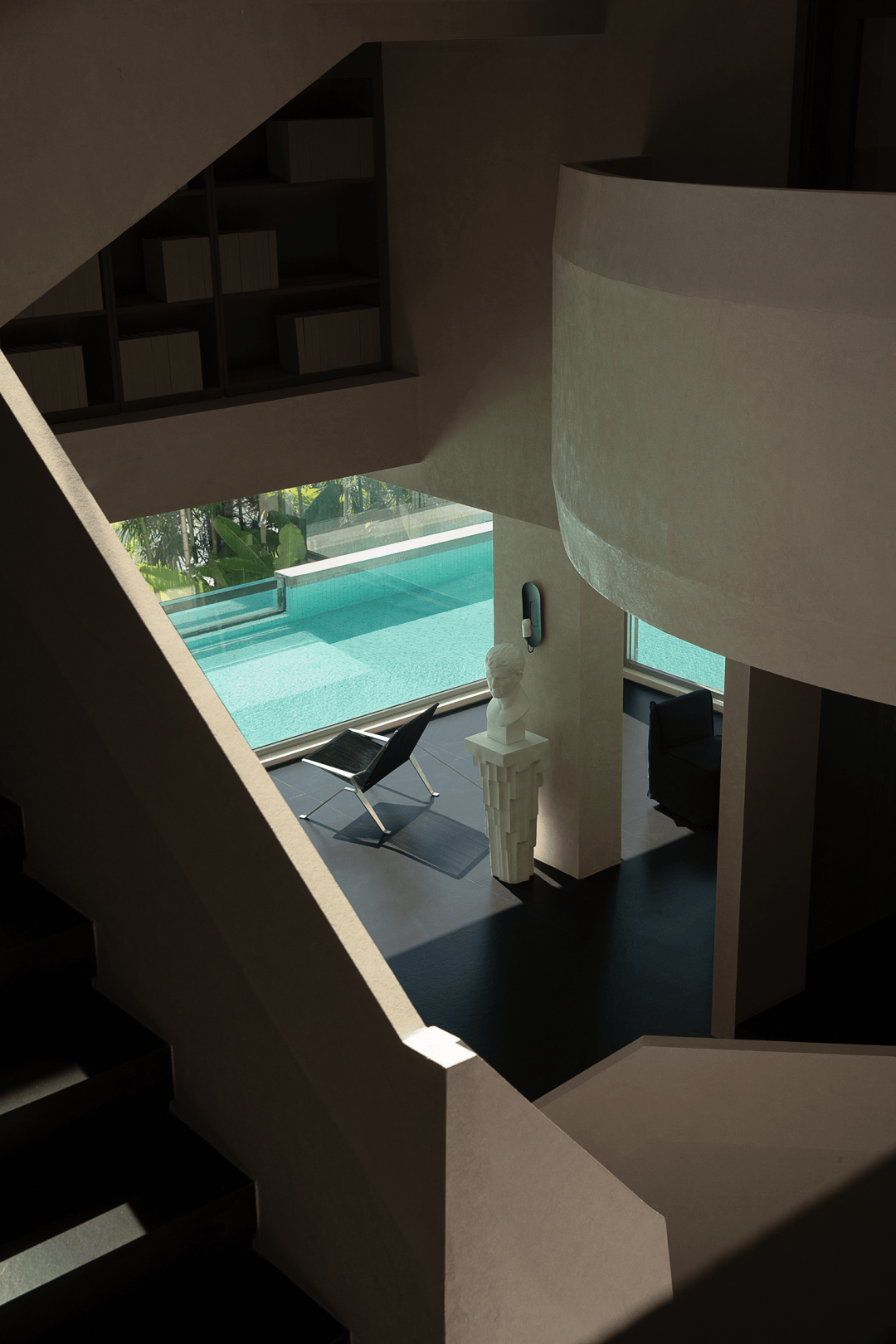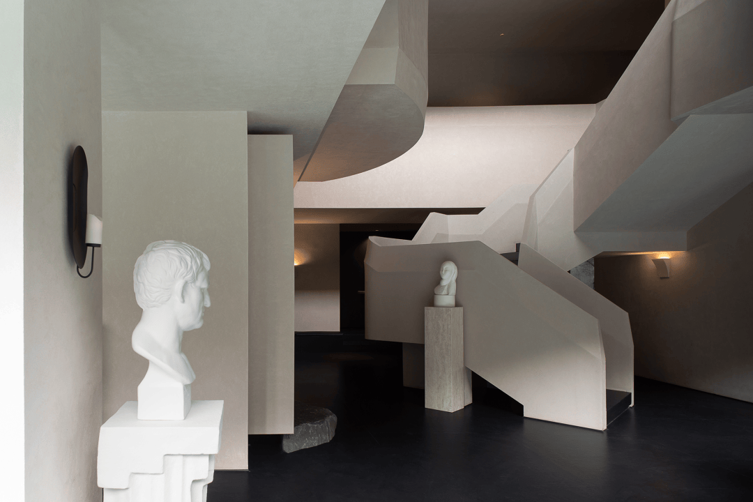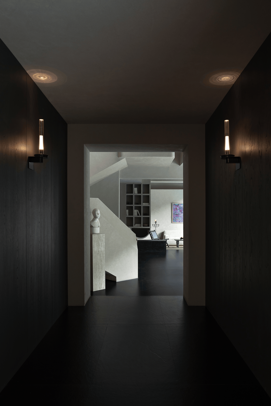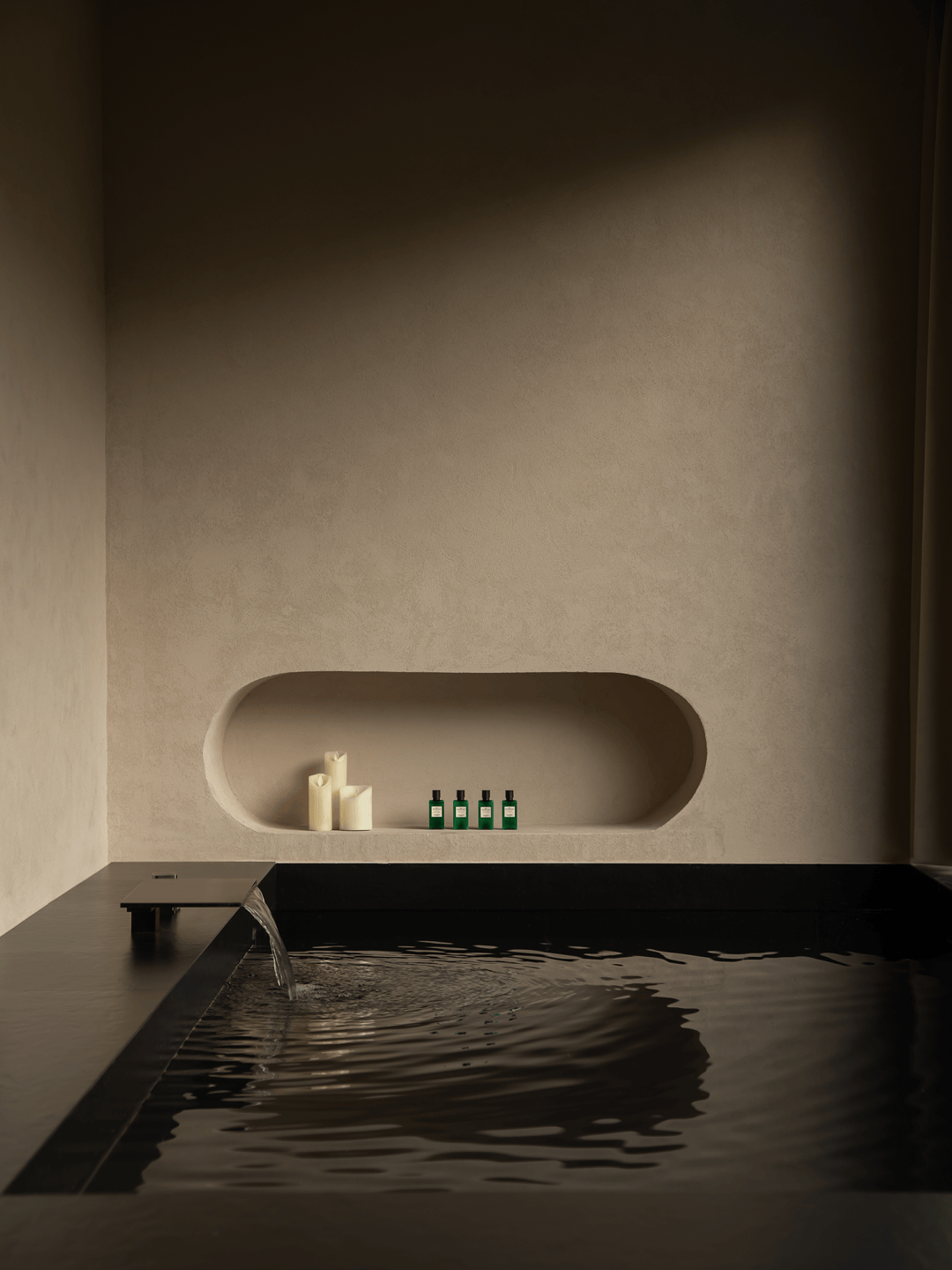 02. 设计剥离了喧嚣的装饰 转而向材质与触感索取灵魂 整座空间如同覆上了一层薄薄的霜雪,以低饱和度的自然色系铺陈,微水泥的墙面带着细腻而连续的灰度,在光影的抚摸下显现出近乎丝绸般的肌理,捕捉着每一寸流逝的时间。