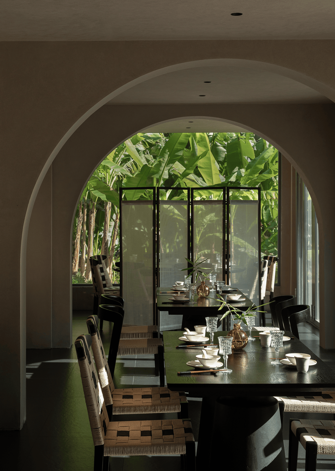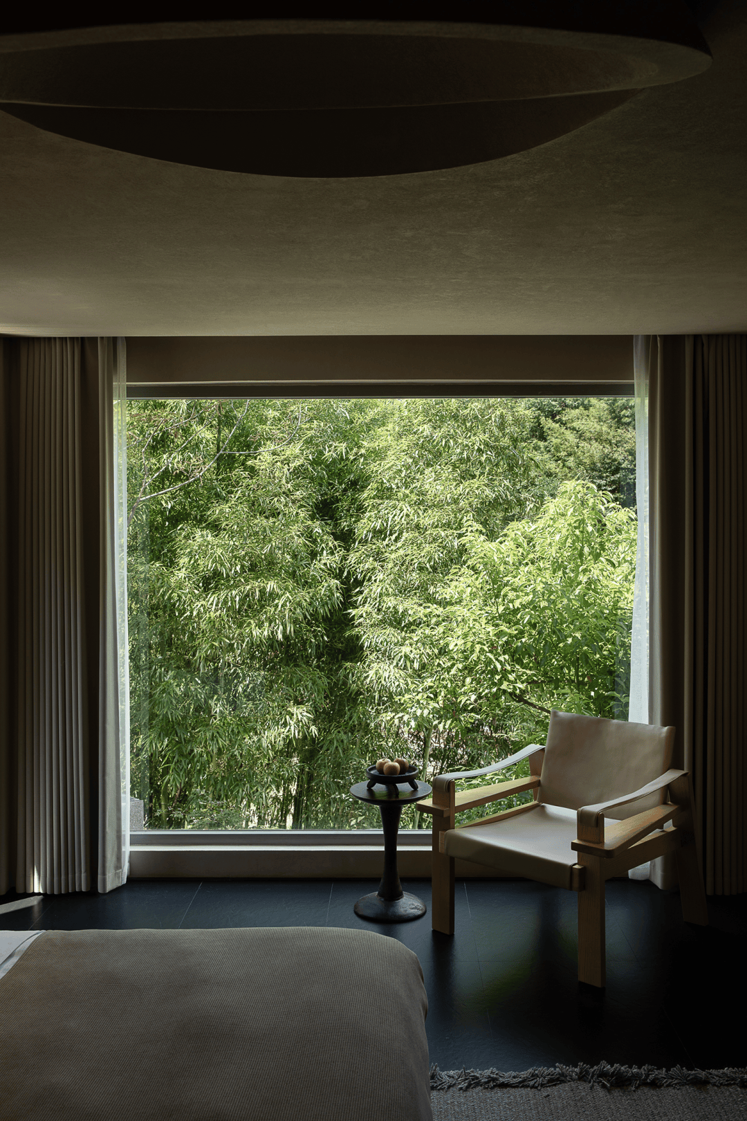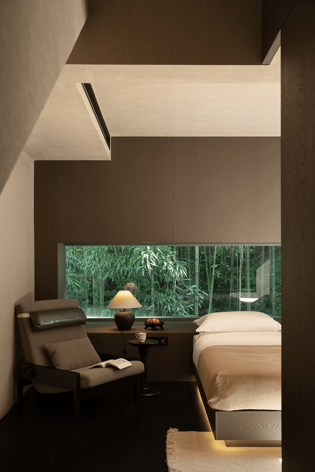 步入建筑内部,大面积的玻璃界面化作了透明的绢帛,将窗外的万顷波光与连绵竹海悉数引为室内的装点。在这里,内与外的界线变得支离破碎。景色不再是被框定的死物,而是随着晨昏流转、风起云涌而呼吸的空间主角。